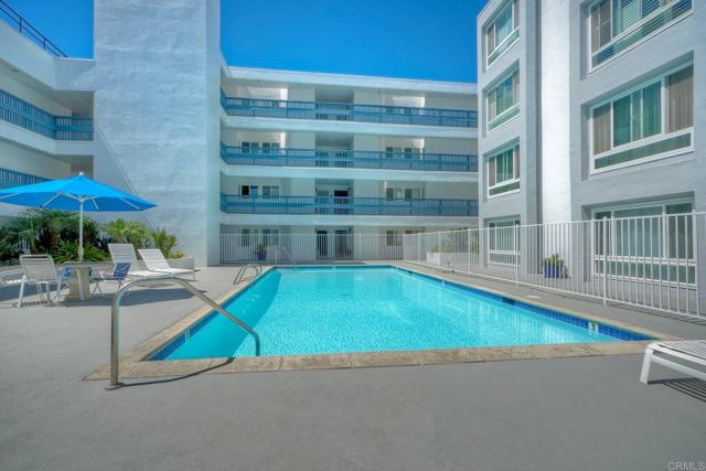 Amenities galore in this complex as well as spectacular panoramic sundeck! Spacious top floor two bed / two bath single level condo with front porch partial ocean views to the west and spectacular sunrise views to the east. This fourth floor unit is located on the wing portion of the complex, offering unusual privacy. Kitchen includes Quartz countertops, new hardware on the cabinets, new refrigerator, new stacked washer/dryer. Oven range and microwave are less than a year new. Both bathrooms include new Quartz Pietra countertops, sinks, faucets, and hardware on the cabinets and doors throughout. Balcony can be accessed from both the living room and the primary bedroom. Fourth floor also includes the stunning sundeck for panoramic views of the ocean and evening sunsets, as well as a quiet retreat for morning coffee or afternoon reading. This smaller complex offers a well maintained heated pool, spa, built in barbecues, seating area, tennis / pickle ball court, and EV charging stations. Underground parking is exclusive to residents and guests with direct elevator access. Within Oceanside's no horns zone. All property information is to be verified by the buyer and buyer's agent. Owner/Occupant is Listing Agent.