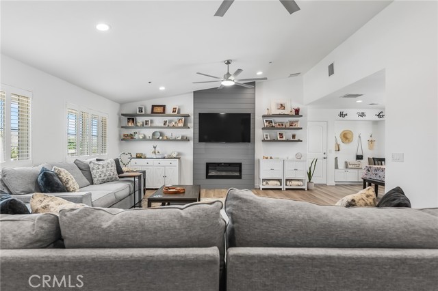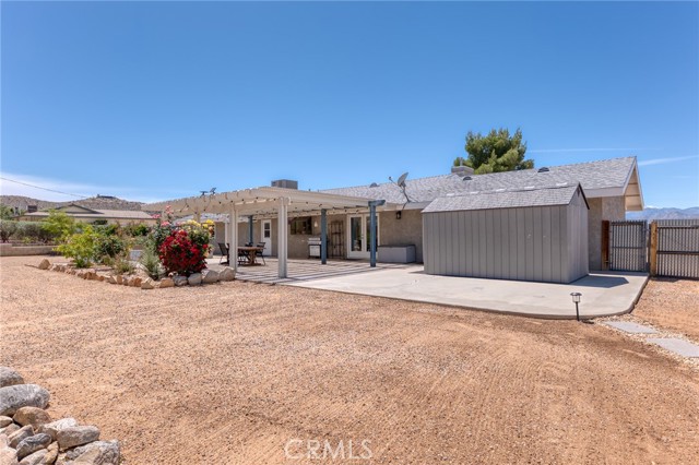 The pictures speak for themselves but once you step into this immaculate and beautiful home you will fall in love. This polished remodel is a home that draws you in with its clean lines and warm touches. Remodeled from top to bottom bringing modern design & updates for comfort and stylish living. So well planned out making every room spacious. Stepping thru the double door entrance brings you into the open concept of a vaulted ceiling, floating shelves, contemporary fireplace and natural warm lighting streaming thru plentiful windows giving you beautiful mountain views. Kitchen boasts of generous granite counters and shiplap touches. Generous granite counter space, stainless steel appliances, custom 2 tone cabinets with self closers, a farm sink and a large garden window are just some of the finishing touches. The shiplap accents continue into the dining and living room bringing continuity of style. Enjoy a meal in the dining room and step out the french doors to a sweet rose garden. Your backyard has expansive concrete patio and covering decked with solar lights. Corrugated planters full of greenery. Desert trees line the yard and all on a bubbler. Beautiful mature trees and a circular concrete driveway welcomes you home. Double gates on each side of house for RV access also.