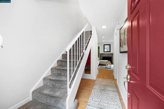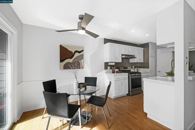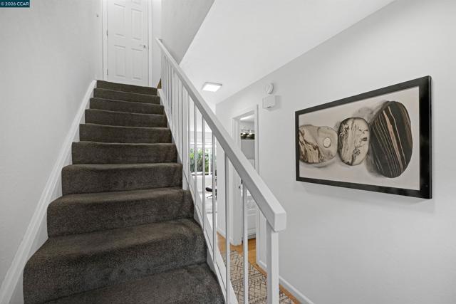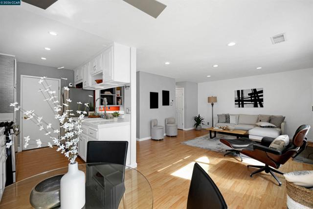 Nestled in Danville’s sought-after Walnut Forest community, this well-maintained townhome offers comfort, style, and convenience. Bright, open floor plan with spacious rear patio backing to a lush greenbelt—ideal for relaxing or entertaining. Features include a well-appointed kitchen, stainless steel appliances, cozy breakfast nook, and rich wood flooring throughout main living areas. Thoughtful updates include newer water heater, garage door opener, and garbage disposal. Recent HOA improvements include exterior paint, updated siding, and newer roof. Ideal east-west exposure provides abundant natural light throughout the day.Upstairs, the primary suite features a versatile walk-in area and private balcony overlooking the greenbelt. Secondary bedrooms are spacious and flexible for guests or home office use. Community amenities include pool and clubhouse. Conveniently located in downtown Danville, shopping, dining, and the Iron Horse Trail. Close to highly rated San Ramon Valley Unified School District,at short distance from Charlotte Wood Middle School and San Ramon Valley High School! Desirable location, comfortable living, and exceptional lifestyle opportunity.