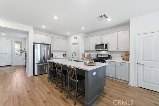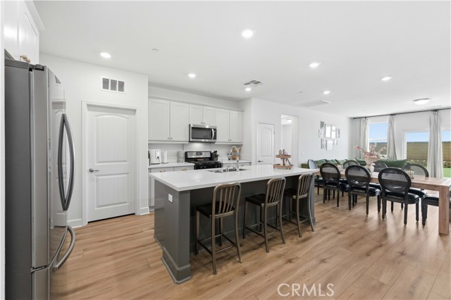 Gorgeous newer build in the desirable Terra Sol II community! This beautifully designed single-story home offers 4 bedrooms, 3 bathrooms, and the perfect blend of style, comfort, and functionality. Featuring vinyl plank wood-look flooring throughout the main living areas with plush carpeting reserved for the bedrooms, this home boasts an abundance of natural light, 6-inch baseboards, two-panel doors, recessed lighting, and elegant quartz countertops. The spacious layout includes a dedicated laundry room, owned solar, and a whole-house water softener system for added convenience and efficiency. Enjoy the fully landscaped backyard complete with slow-drip irrigation, a pergola, and breathtaking sunset views of the surrounding mountains. This home truly has it all--don't wait, call today!