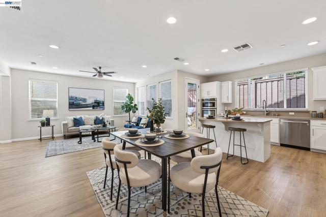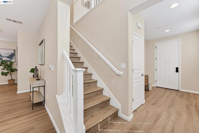 Welcome to 6862 Baird Street in Dublin, a stunning contemporary residence nestled in Dublin’s sought-after Heritage Park community! Built in 2017 by Pulte Homes, this 2,008-square-foot sanctuary perfectly captures the essence of modern California living, offering a sophisticated blend of style, comfort, and convenience. The home’s open-concept main floor greets you with warmth radiating from light colored walls, and beautiful light wood flooring. This bright and airy layout creates a seamless flow between the living, dining and kitchen, making it an ideal space for both quiet family evenings and large holiday gatherings. At the center of the home is a gourmet designer kitchen, featuring white shaker cabinets, elegant tan colored quartz countertops, stainless-steel appliances and a large central island. The second level opens into a spacious, versatile loft that can easily serve as a high-tech home office, media lounge, or children's play area. This floor also houses three light filled bedrooms, 2 bathrooms and a laundry, all designed with clean lines and modern finishes to provide a private, peaceful retreat. This beautiful home is perfectly positioned for easy access to top-rated Dublin schools, parks, shopping, library, museum, the scenic Iron Horse Trail, I-580 freeway and the Dublin/Pleasanton BART station!