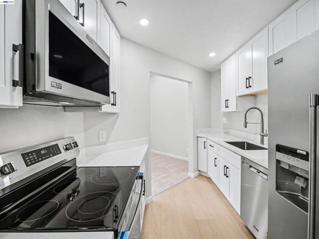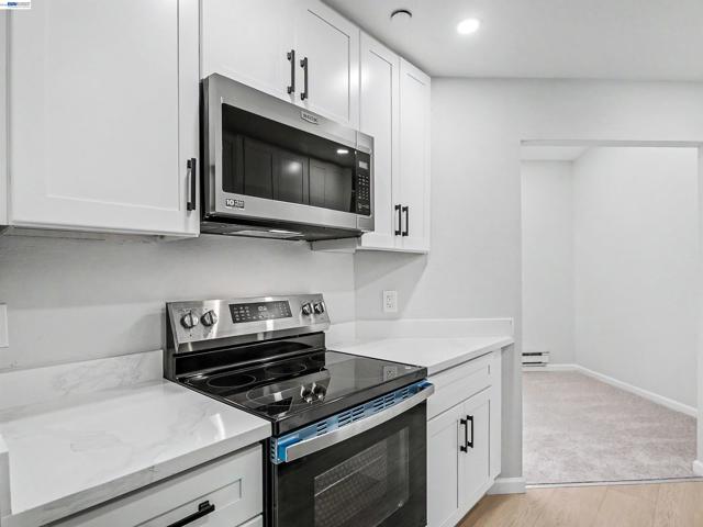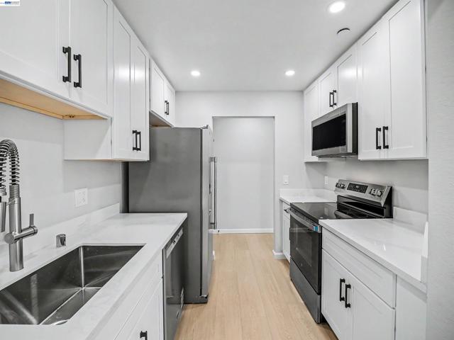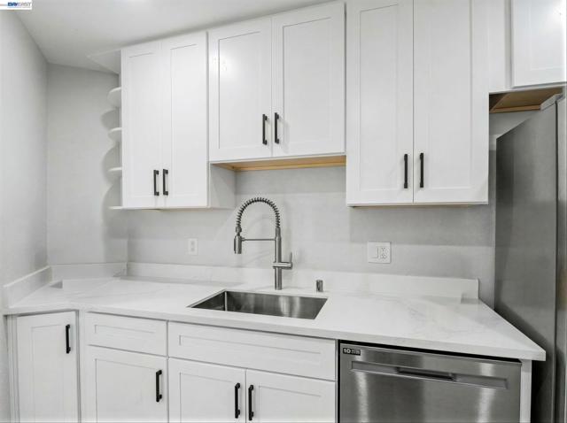 Welcome to this lovely top-floor condo in the sought-after Fremont Villas community! This beautiful home features 2 bedrooms and 1 bathroom within 882 sqft, complete with an in-unit laundry setup including a washer and dryer. The spacious living room boasts vaulted ceilings and recessed lighting, with large windows that fill the space with natural light. The gourmet kitchen is a chef’s dream, featuring new cabinets, quartz countertops, and new stainless-steel appliances, including a microwave, free standing electric stove, dishwasher and refrigerator. Step out onto the private balcony with storage—an ideal spot for relaxation. The freshly painted interior, including the ceilings, adds a vibrant touch, making this home truly move-in ready. The HOA offers fantastic amenities such as a covered parking space, storage unit, gated pool, and expansive greenbelts. Located centrally, you’ll be just a short walk from BART, Central Park, Lake Elizabeth, Aqua Adventure Water Park, Fremont Library, Kaiser, Washington Hospital, and a variety of local eateries and shops. With easy access to 880, 680, Dumbarton Bridge, and Niles Canyon, this condo is perfect for first-time buyers or investors, with no rental restrictions. Don’t miss this wonderful opportunity!
