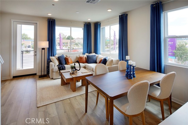 Welcome to Sagecrest by Century Communities! This beautiful Tri-level Gated townhome community is located in the heart of Riverside close by the 91 freeway right off Van Buren Blvd. very close to shopping, restaurants and California Baptist University as well as UC Riverside. After walking through your private patio, you will enter to the first floor you will find a jr. suite with its own walk-in closet and full bathroom. Heading up to the second floor you enter a spacious Kitchen with a large island and dining area open to living room which has a large private balcony with city views. The kitchen features " Prelude White" cabinets, quartz counters and a stylish backsplash. The second level also includes a bedroom and full bathroom. Going up to the third level you will find a spacious Owner's Suite which includes large bathroom with double sinks, walk-in shower and walk-in closet. Finishing the 3rd level there's an additional bedroom with its own private bathroom and walk-in closet. Laundry room is also on third level. Come see this amazing community, Sagecrest is a Gated Community and will include a playground, dog park, shade structures and BBQs and more!