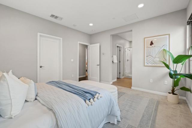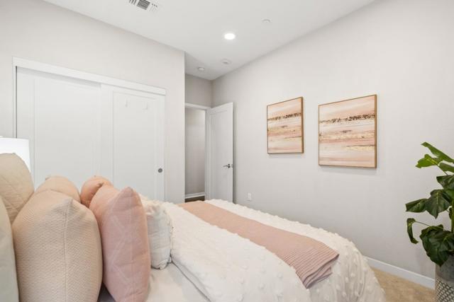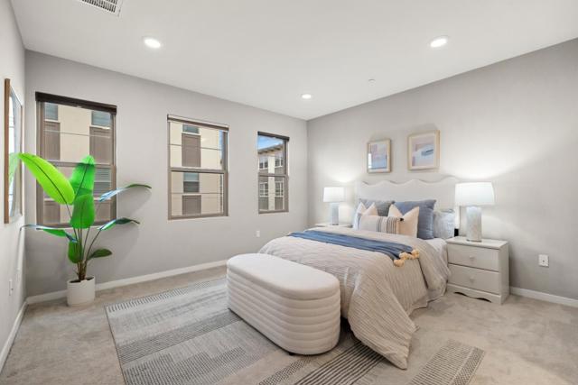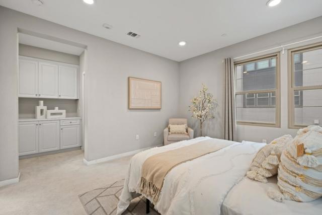 *Set within a Community of the award-winning neighborhood, this sought-after Courts design offers an open, light-filled layout with limited shared walls. *The main living area showcases expansive windows that fill the space with natural light. *The open-concept kitchen seamlessly connects to the dining & living areas, featuring a large center island, ample cabinetry, stainless steel appliances & extensive storage. Adjacent built-in cabinets & a dedicated pantry area. *A spacious bedroom on the second floor offers versatility, perfect for guests, a home office, or multi-generational living. The primary suite is well-proportioned and comfortable, with an ensuite bath featuring dual sinks, a soaking tub, and a glass-enclosed shower. *Additional highlights include a 2-car garage, in-unit laundry, recessed lighting, & well-maintained finishes, plus a private balcony/patio. *Community amenities include a clubhouse, BBQ area, playground, trails, & parks. Ideally located near San Jose Municipal Golf Course, Sprouts, H Mart, shops, & dining. Easy access to Google Shuttle, BART, Great Mall, & major tech employers like Nvidia, Google, Apple, & Supermicro. Disclaimer: County records show 2 bedrooms; prior seller added a door to the 2nd-floor office & converted it into a bedroom.