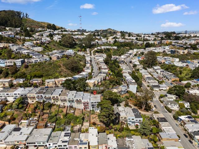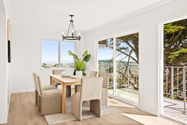 Perched on a hillside in San Francisco's Sunnyside neighborhood, 339 Melrose Ave offers sweeping Bay to ocean views & exceptional potential. This move in ready 3 level home features 5 bedrooms total & 3 baths, plus 2 kitchens w/a flexible layout suited for multigenerational living, renovation, or reimagining. The upper level showcases a spacious living area w/fireplace, large windows, & direct access to a view deck, filling the home w/natural light. The updated open stadium kitchen & dining area flow easily for everyday living & al fresco decked entertaining. The primary suite serves as a private retreat with an ensuite bath and walk-in closet, complemented by a second bedroom with its own walk-in closet, a hall bath, and a third bedroom or office. The 2 Lower Levels offer 2 additional bedrooms & a full kitchen, recreation space, along with an updated bath, a versatile space for guests, office, or extended living. The house stands on a lot that offers the possibility for terraced gardening, multiple patios, or playground areas. Generous sq ft & strong bones create a rare opportunity to customize a view property in a prime location. Sunnyside offers a quiet residential feel with easy access to Glen Park, Noe Valley, BART, & major commuter routes.