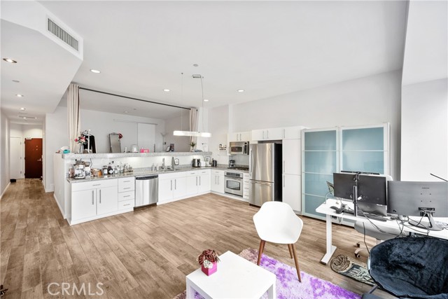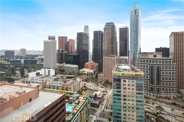 24-HOUR CONCIERGE: private and secured lifestyle. Here's your opportunity to live at LA’s iconic WILSHIRE BOULEVARD— Situated high on the 26th FLOOR, this PEACEFUL west-facing loft offers BREATHTAKING SUNSET VIEWS, capturing the glowing golden hour light through expansive wall-to-wall windows. The 800 sq ft layout is thoughtfully designed with an OPEN-CONCEPT living and dining area, allowing for versatile furnishing arrangements and a spacious feel. The ELEVATED PLATFORM BEDROOM includes two closets, plush carpeting, a wraparound ledge perfect for displaying art or décor, and UNOBSTRUCTED CITY VIEWS. The KITCHEN features granite countertops, stainless steel appliances, plentiful cabinet space, and recessed lighting—ideal for both daily living and entertaining. This CHARMING BATHROOM offers a nostalgic coastal vibe with sailor blue and navy tile accents. Enjoy a relaxing soak in the deep tub, a separate walk-in shower, an oversized vanity, and generous storage throughout. At 1100 WILSHIRE, you don't need to leave your building to enjoy LUXURY AMENITIES; on the 17th-floor SKYDECK, including a HEATED INFINITY POOL, SPA, CABANAS, LOUNGE BEDS, WET BAR, multiple BBQ area and a FIRE PIT—all designed for RELAXATION and ENTERTAINMENT. Stay fit in the fully equipped GYM with flat-screen TVs or unwind in the PRIVATE MOVIE THEATRE. A BUSINESS CENTER, GUEST PARKING, 24-HOUR CONCIERGE, and controlled access add to the convenience and SECURITY. Located just steps from the Financial District, LA Live, 7th & Fig, and some of LA’s best dining and shopping, you’re truly in the heart of it all. The HOA COVERS water, gas, and trash, making urban living seamless. Also within walking distance: Whole Foods, Perch, 71Above, Water Grill, Clifton’s, Teragram Ballroom, and more. Just a short drive to the Arts District, Echo Park, Silverlake, and Elysian Park (Dodger Stadium), with quick access to the 110, 10, and 101 freeways. Nestled among HOLLYWOOD's elite, this residence offers unparalleled ELEGANCE and EXCLUSIVITY. Don't miss your chance to be part of this LEGENDARY locale. Available for lease/purchase.