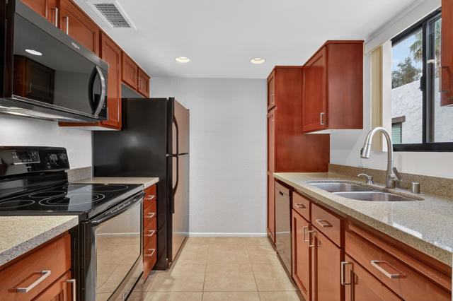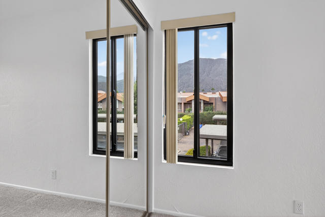 Long term lease opportunity - 12 months or more. Located just minutes from downtown Palm Springs, this updated 3-bedroom, 2-bath condo in the sought-after Ramon Estados community offers comfort, convenience, and resort-style amenities. Step inside and you are greeted by a spacious living area with vaulted, wood, tongue-and-groove ceilings that create an abundance of light and openness. The primary ensuite is located on the east wing of the condo while the two guest bedrooms and bath are located on the west wing, the ideal layout for privacy. The kitchen has been updated with stone countertops, custom wood cabinetry.Enjoy a large, covered patio complete with extra storage, overlooking the greenbelt with views of the San Jacinto Mountains. Ramon Estados offers everything you could want: two sparkling pools and spas, tennis and pickleball courts, clubhouse with gym, sauna, game room and more. Additional storage space provided with unity. One assigned parking space. Plenty of guest parking. Condo is also available for sale. If rented, condo will be taken off the market. Renter to apply using rentspree. Tenant to secure renters insurance. Photos have been Virtually Staged.
