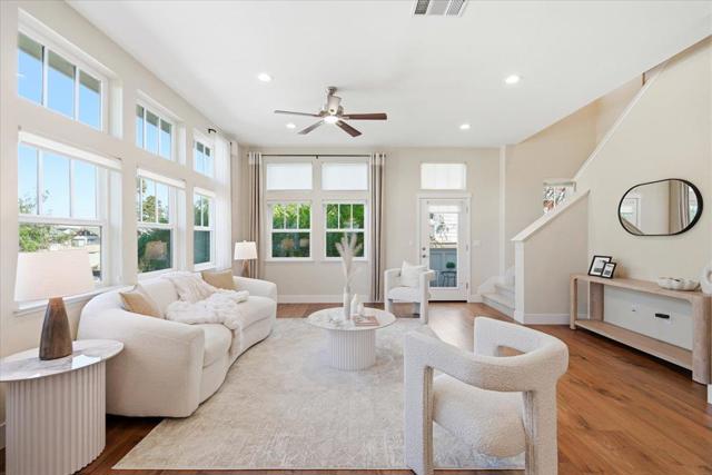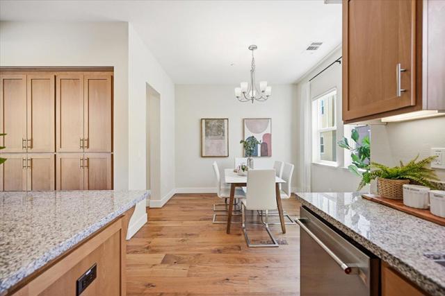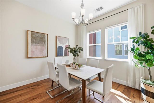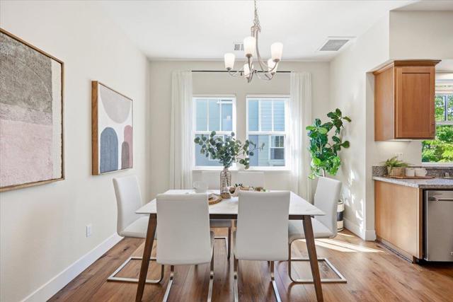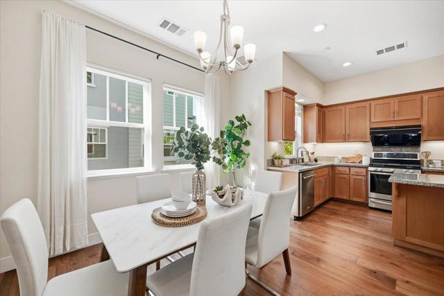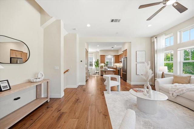 Bright and spacious newer townhome in a prime location of Mountain View. This desirable corner unit is situated in the center of the community, offering a quiet and private setting. Built by Classic Communities, this planned unit development allows ownership of both the structure and the land. The 1st level features a bedroom with a half bathroom, ideal for a home office or guest room, along with a two-car side-by-side garage equipped with an EV charger. The 2nd floor offers a bright open-concept great room with high ceilings and large windows. The sun filled living room offers high ceilings, tall windows and open to a private balcony. The kitchen features S/S appliances with high power range hood, an oversized island with bar seating. The dining area is right next to the kitchen with a window view. A half bathroom and laundry are also on this level for everyday convenience. The top floor features 3 bedrooms and 2 full bathrooms. The spacious primary bedroom is bright and spacious with a walk-in closet. The primary bathroom features a walk-in shower, and double vanity. This location is minutes away from tech giants like Google, Intuit, Meta, Apple, LinkeIn & 101 freeway, and just short stroll away from Rengstorff Park, community center, downtown, and San Antonio Village.