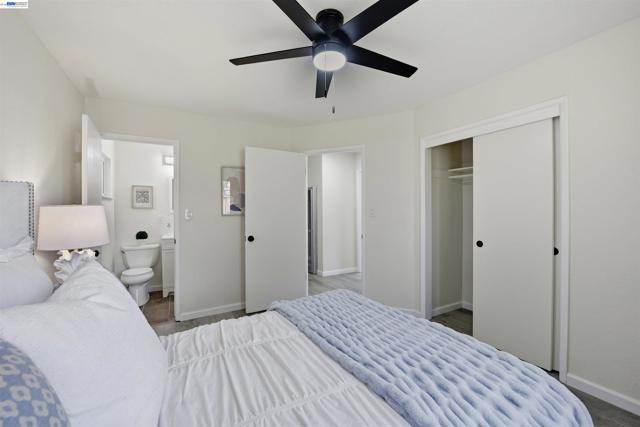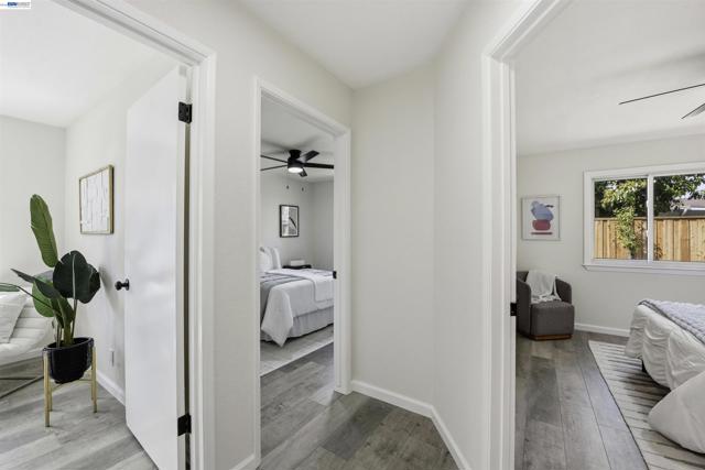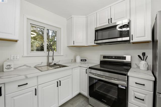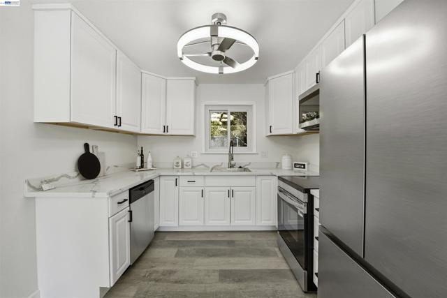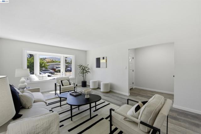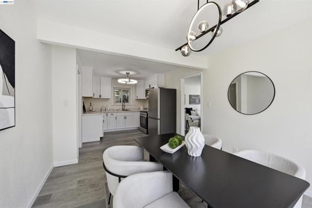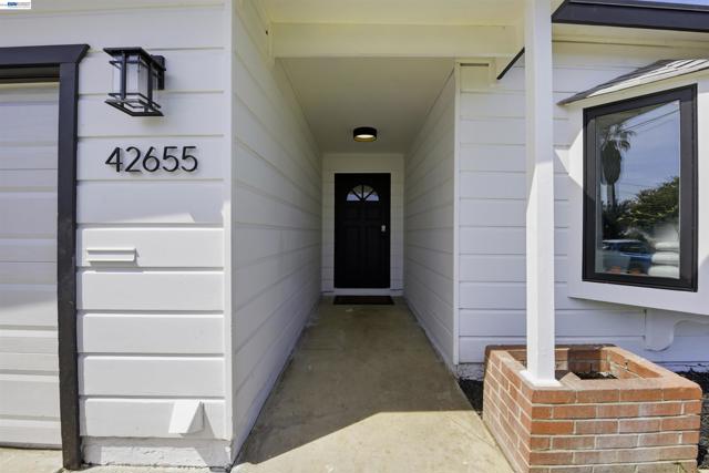 Welcome to 42655 Charleston Way. A beautifully renovated single story gem nestled in the heart of Fremont's vibrant Irvington neighborhood. From the moment you arrive, the crisp white exterior, lush green lawn, and curated landscaping create an undeniable curb appeal. Step inside and discover a light filled, thoughtfully designed interior where modern style meets everyday comfort. The open living area greets you with wide plank luxury vinyl flooring and a sophisticated monochromatic palette of black and white tones. All anchored by a stunning bay window that floods the space with natural light and frames hillside views. The property has a new roof and a fully remodeled kitchen is a chef's dream: crisp white shaker cabinetry with matte black hardware, quartz countertops, a designer circular chandelier, and brand-new stainless steel appliances throughout. A separate dining area with French doors opens seamlessly to a large, private patio, perfect for al fresco entertaining or quiet evenings under the open sky. Three well appointed bedrooms offer peaceful retreats, each with fresh flooring new windows and ceiling fans and light fixtures throughout. Two fully remodeled bathrooms. The spacious backyard is a true outdoor sanctuary. Complete with a generous concrete patio, and a newly fenced yard. Whether you're hosting summer barbecues or enjoying a peaceful morning coffee, this outdoor space delivers. Location is everything — and Irvington delivers. You're steps from Irvington's beloved commercial corridor with local restaurants, cafes, and shops. Top-rated Irvington High School is practically in your backyard, and the neighborhood's walkability and community feel make it one of Fremont's most consistently desirable pockets. Commuters will love the quick access to I-880, I-680, Highway 84, and the Fremont BART station — putting the entire Bay Area within easy reach. NUMMI-era employers, Lam Research, Meta's Fremont presence, and the broader Silicon Valley tech corridor are all a straightforward commute away. Homes this turnkey, in this neighborhood, don't sit long. All offers due on the May 6th 5pm