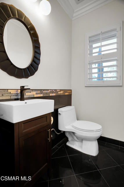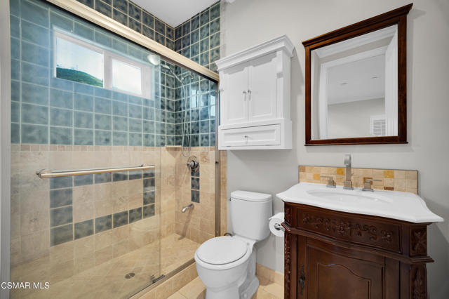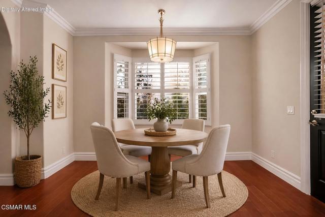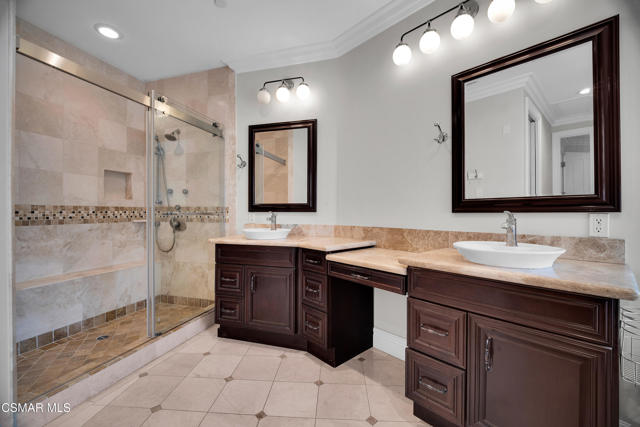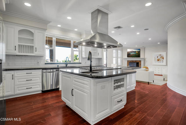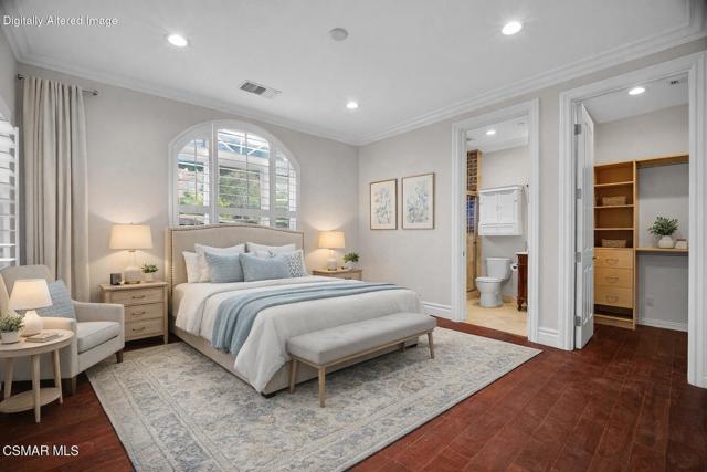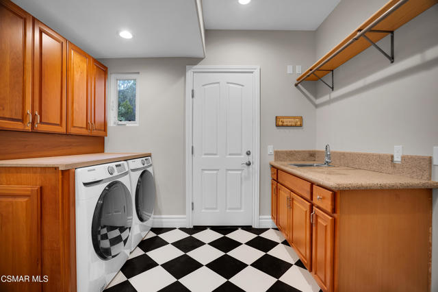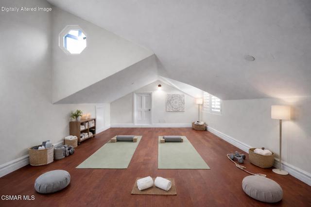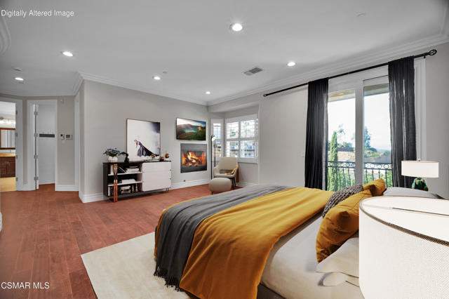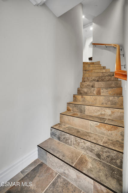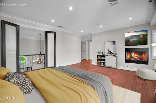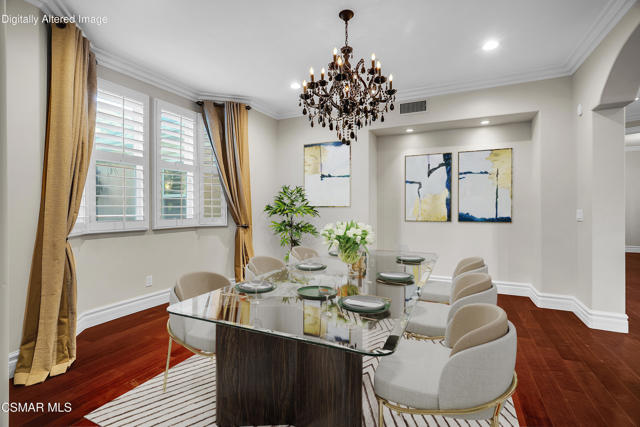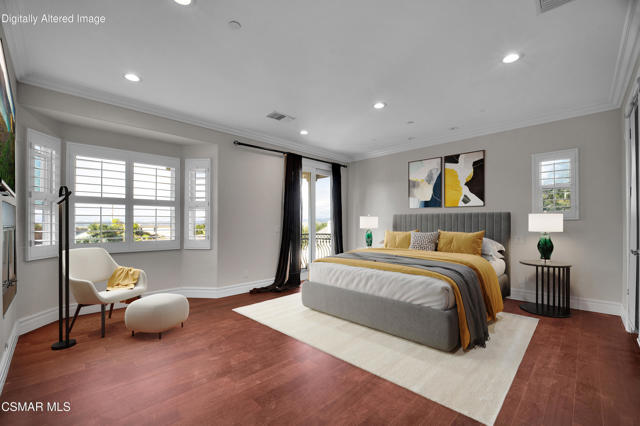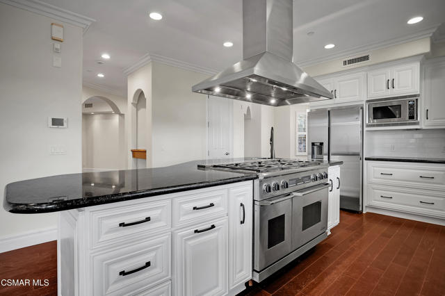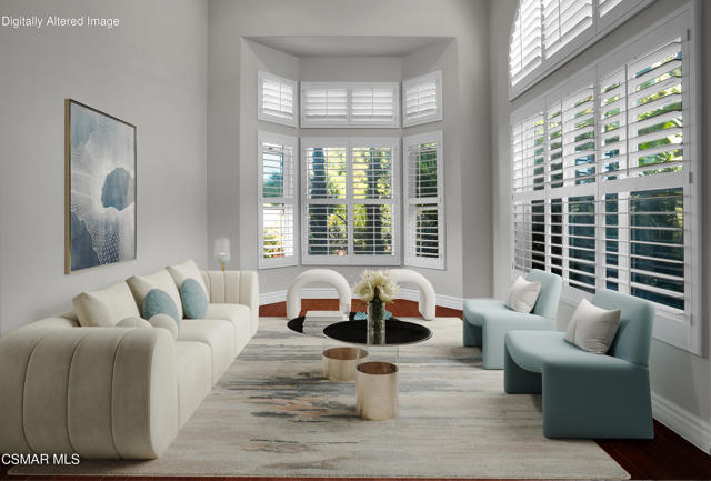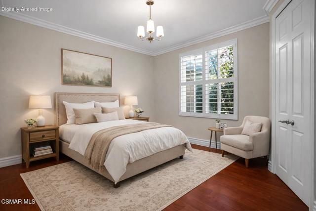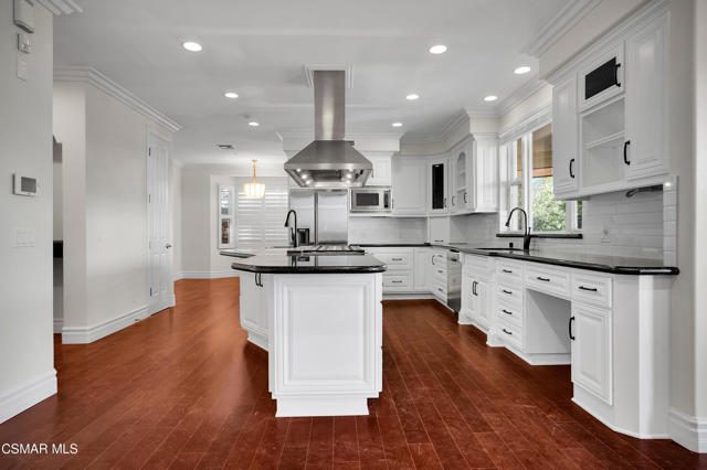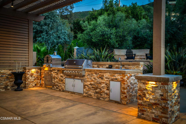 Rare opportunity to own a truly exceptional 4,137 sq ft gated Mediterranean-style estate nestled on a sprawling 29,273 sq ft lot with sweeping views of the Conejo Valley. From the moment you enter, the home impresses with dramatic volume ceilings, stunning architecture, an elegant curved staircase with wrought iron detailing, and an abundance of natural light streaming through expansive windows adorned with plantation shutters. Rich hardwood flooring, refined crown molding, and thoughtfully designed living spaces create a warm yet sophisticated atmosphere throughout.At the heart of the home, a beautifully appointed chef's kitchen blends style and functionality, featuring high-end stainless-steel appliances, granite countertops, custom cabinetry, a generous center island, and a walk-in pantry. The kitchen opens seamlessly to the inviting family room, making it ideal for both everyday living and entertaining.Designed with flexibility in mind, the home includes a private lower-level guest suite with its own entrance, kitchenette, bathroom, and laundry, perfect for guests, extended family, or multigenerational living. Upstairs, the primary suite serves as a luxurious retreat, complete with a fireplace, dual walk-in closets, a spa-like bath with soaking tub & glass-enclosed shower, and a private veranda capturing peaceful valley views.Step outside to a resort-inspired backyard designed for ultimate enjoyment. Multiple patios and outdoor living areas surround a sparkling saltwater pool and spa, while a spacious gazebo/pavilion offers a built-in BBQ, pizza oven, fireplace, and lounge space--ideal for hosting or relaxing in style. The grounds are beautifully landscaped with drought-tolerant plants, turf, and fruit trees, creating a private and serene setting.Additional highlights include a 4-car attached garage with direct access, extra driveway parking, RV access gate, owned solar system, dual-zone HVAC, tankless water heater, and a bonus room above the garage offering added storage or flexible use space. Conveniently located near parks, trails, top-rated schools, and shopping, this distinctive property offers the perfect blend of luxury, comfort, and lifestyle.