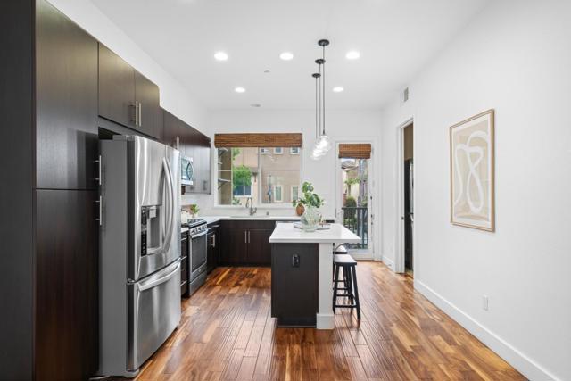*Desirable layout with main living area, kitchen, and all bedrooms on one level, plus a private ground-floor bedroom with full bath. Former model unit with refined finishes and balanced design. *Bright natural light throughout. Open-concept living area connects to an updated kitchen featuring a large island, ample cabinetry, stainless steel appliances, and new quartz countertops, sink, faucet, and backsplash. *Indoor-outdoor living with two private balconies on the main level, including a garden-view patio with a bi-fold door opening the full wall. Additional private patio on the first floor. *Primary suite includes a walk-in closet. Attached 2-car side-by-side garage with epoxy flooring, Tesla EV charger, water softener, & filtration system. Unobstructed views with good spacing from neighboring units. *Community offers HOA amenities including BBQ areas, playgrounds, & outdoor gathering spaces. *Convenient location near VTA Hostetter Station and BART, with easy access to Costco, 99 Ranch Market, and H Mart. Walking distance to Villa Sport Athletic Club. Zoned for Ruskin Elem, Sierramont Middle, and Independence High (per GreatSchools). Close to major employers like NVIDIA, Google, Apple, & Supermicro. *Disclaimer: County records show 2 bedrooms; first-floor room has no closet.