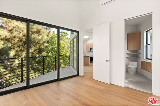 Enjoy serene hillside living in this brand-new architectural ADU surrounded by lush greenery and natural light. This thoughtfully designed 1-bedroom, 1-bath retreat features high ceilings, wide-plank oak floors, and designer finishes throughout. The open-concept kitchen boasts custom white oak cabinetry, terrazzo-inspired quartz counters, open shelving, and premium stainless steel appliances. Oversized glass sliders open to a private deck nestled among mature trees, perfect for morning coffee or evening relaxation. The bedroom includes custom built-in closets and an en-suite bath with a walk-in shower, floating vanity, and warm wood tones for a spa-like feel. Additional highlights in-unit washer & dryer, and a private entry with a striking modern orange door. Tucked away for privacy yet close to everything, this peaceful hideaway offers the perfect blend of modern design and natural tranquility.