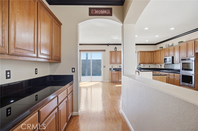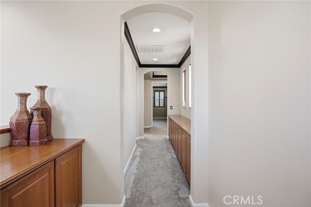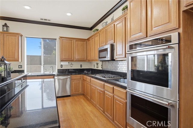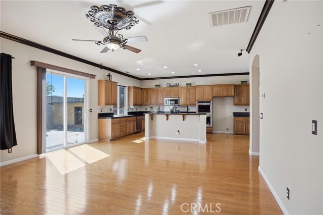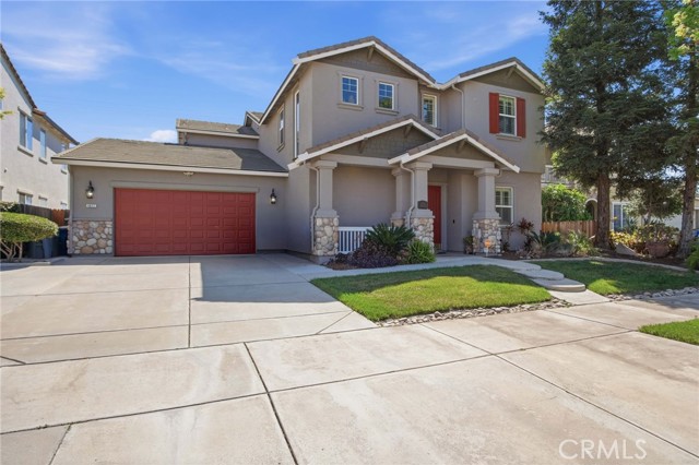 Absolutely stunning home in Bellevue Ranch. This turnkey North Merced home offers comfort, space and convenience with easy access to CatTracks, Merced College, and UC Merced. Step inside to find a thoughtful layout featuring a formal Livingroom, family room, formal dining area as well as eat-in kitchen. Gourmet kitchen with granite counters, gas cooktop and double ovens. One bedroom and full guest bath is downstairs. Upstairs we have 4 bedrooms with 3 full bathrooms. Large primary bedroom with primary bathroom walk-in showers, soaking tub, double sinks and his and hers walk in closets. Additional highlights include an upstairs laundry room with cabinetry, hardwood flooring throughout the main level, plantation shutters on several windows, custom entertainment center, custom mantel, whole house fan, water softener, a spacious 3 car tandem garage with custom cabinets and entertainment center and beautifully landscaped front and backyards. The backyard is perfect for relaxing or hosting