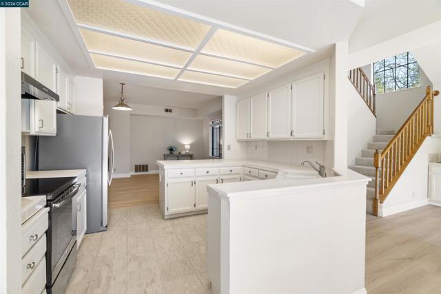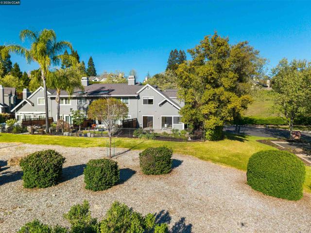 Fabulous Blackhawk Townhome with Gorgeous Views!! Beautiful Eagle Nest Townhome with 1,976 sq.ft. apx. on .11 ac. lot apx. inside the gates of Blackhawk. Charming Entrance! Marble tile foyer. 1st floor powder bathroom. Inviting kitchen with GE Range and recent stylish painted cabinetry, hardware and new Whirlpool stainless refrigerator. The adjoining family room conveniently located next to the kitchen is an ideal entertainment area or workspace area. New stylish laminate flooring in the family room, living room and dining area. The beautiful living room and dining area have picturesque views of the surrounding hills and access to the charming rear yard and outdoor patio. Well-designed floorplan with three bedrooms, two full baths and a convenient laundry room on the upper level. Primary Suite with volume ceilings, ceiling fan/light, and picturesque views. The adjoining primary bathroom with new elegant luxury vinyl flooring, two vanities, separate tub and shower and a walk-in closet. The upstairs secondary bedrooms share a lovely jack and jill bathroom. Gorgeous new laminate flooring in the Family Room and Living Room and Dining Room. New Carpet in 2025. Neutral Paint throughout. Fabulous place to call home for great indoor-outdoor living and views!