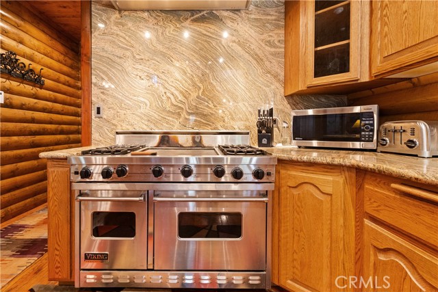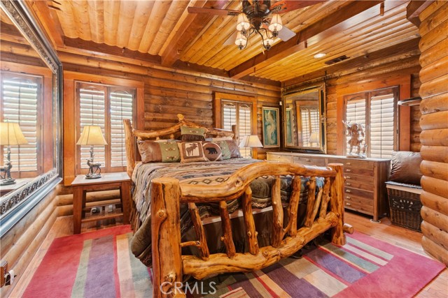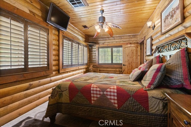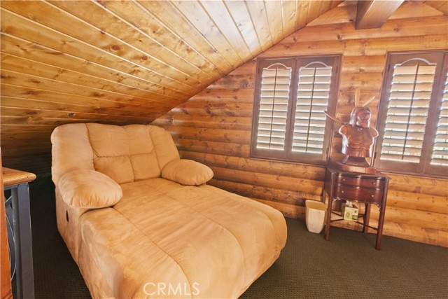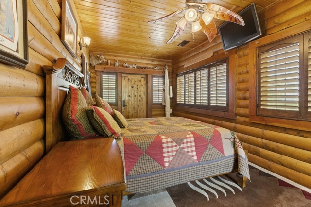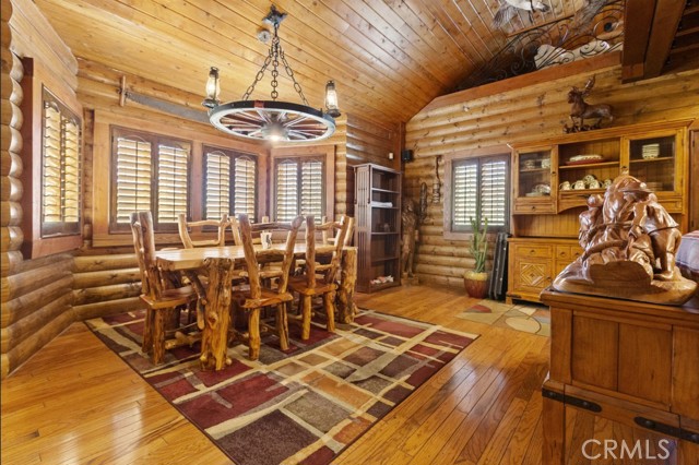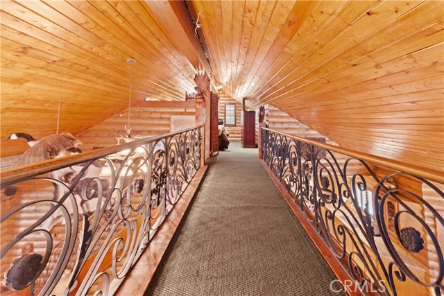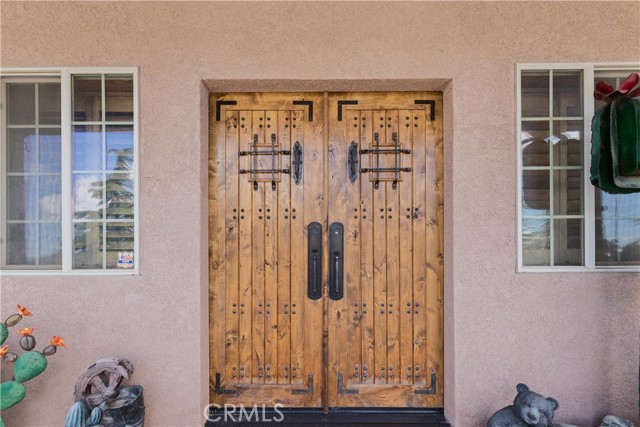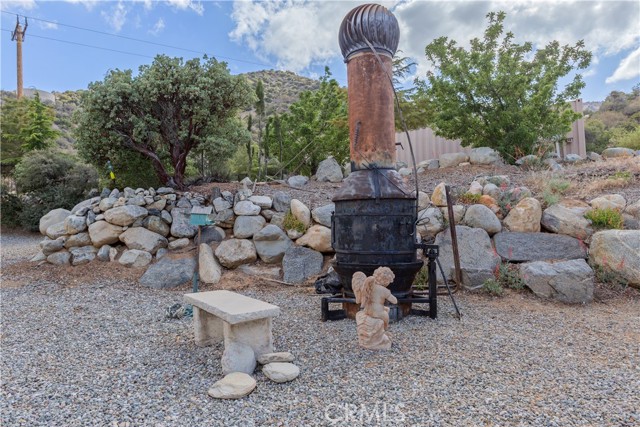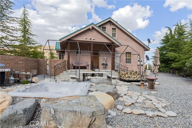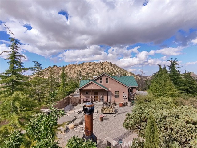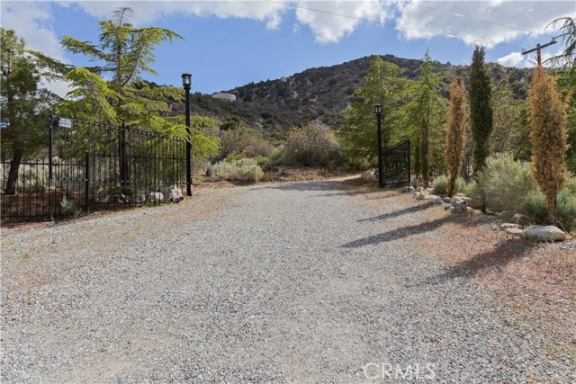 BACK ON THE MARKET! Discover a truly awe-inspiring mountain retreat meticulously crafted by its original owners. This exceptional property, perched near the peak of Desert Front Road in Wrightwood, offers breathtaking 360-degree views and an unparalleled mountain living experience. As you approach via Oak Valley Springs Rd, an impressive double swinging wrought iron fence welcomes you to this 2.4-acre haven. Step inside to find a luxurious log cabin-style interior spanning 1,458 sq ft, with an additional upstairs loft for extra sleeping quarters. The gourmet kitchen is a chef's dream, featuring a commercial-style cooktop, eye-catching range hood, and complete stainless steel appliances. Luxurious whole-piece granite counters and backsplash add a touch of elegance. The primary suite includes an ensuite bathroom with a shower for ultimate convenience and privacy. The dramatic living room is highlighted by a floor-to-ceiling stone fireplace adorned with a massive moose head, creating a true mountain ambiance. A versatile downstairs den, perfect as an additional bedroom, opens to the front porch. Upstairs, discover two lofts overlooking the dining area and fireplace, offering a cozy seating area and a potential third bedroom. Step outside to find an outdoor oasis featuring multiple seating areas, a spa, barbecue, and custom outdoor wood-burning stove. Explore the property's rolling trails lined with gravel, mature trees, and indigenous foliage. Enjoy numerous trails and sitting areas throughout the property, including view points and charming outdoor décor. A standout feature is the railway and mine shaft emerging from the hillside, complete with skeleton-themed characters guarding the entrance. Multiple containers on-site cater to all your storage needs, ensuring ample space for your belongings and outdoor equipment. This home truly embodies the pride of its owners, with every detail thoughtfully designed to create an inspiring and comfortable living space. Whether you're seeking a permanent residence or a mountain getaway, this property offers an unmatched blend of luxury, nature, and adventure. Don't miss this once-in-a-lifetime opportunity to own a piece of Wrightwood paradise!