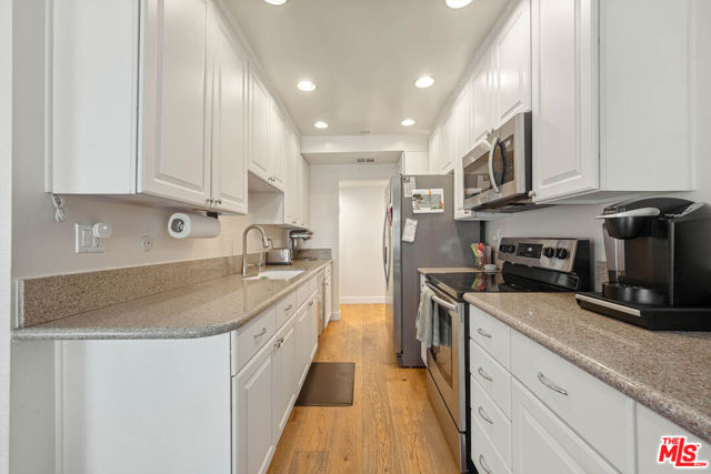 Rare 3 Bedroom 2.5 Bath condo opportunity just outside of the desirable Beverlywood HOA! This lovely unit in an amenity-filled building has it all, starting with a spacious Living Room that features a gas fireplace for extra charm, and leads you to the patio that spans from the Living Room down to the Dining Room, both of which have sliding doors, making outdoor access easy. The home's kitchen features stainless steel appliances, granite counters and plenty of storage! The Primary Bedroom features two closets and a Primary Bathroom with double vanity sinks. The 2 Secondary Bedrooms share the convenient hall Bathroom. The unit additionally features new hardwood floors, electric car charger, a powder room and extra closets, where buyer can install their own Washer/Dryer. Amenities in the building include pool, sauna exercise room, library, meeting room, secure garage and Earthquake Insurance. Just down the road from the wonderful shops, cafes, grocery stores and shops of Beverly Drive, yet 1 block from the quiet Beverlywood neighborhood, this conveniently located unit is not one to miss! Call/text/email LA1 for showings.