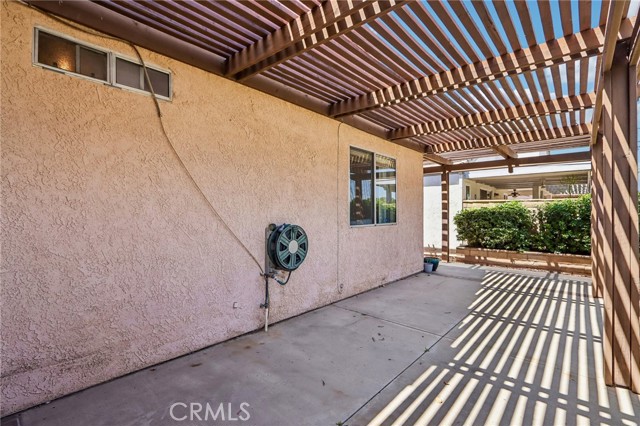 Discover comfortable living in this inviting 2-bedroom, 2-bath home located in the desirable Casa Murrieta 55+ community. The home welcomes you with an open and airy layout highlighted by vaulted ceilings, creating a bright and spacious atmosphere throughout the main living areas. The floor plan includes a dining space, a generous living room ideal for everyday living or entertaining, and a versatile bonus room that can easily serve as a home office, reading nook, or hobby space. Outside, the home features a wraparound covered patio that creates a comfortable space for relaxing or enjoying time outdoors. A private side sitting area offers an additional quiet retreat, while the absence of rear neighbors provides a greater sense of privacy in the backyard. Conveniently located directly across from the community clubhouse, pool, and spa, residents enjoy easy access to neighborhood amenities. The home also features a low HOA and is centrally located near the I-215 freeway, shopping, dining, and everyday conveniences. Don’t miss this wonderful opportunity to enjoy relaxed 55+ community living.