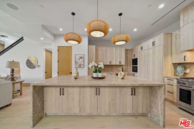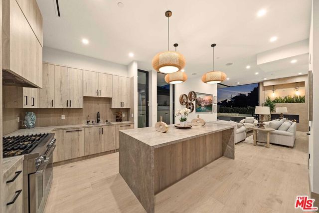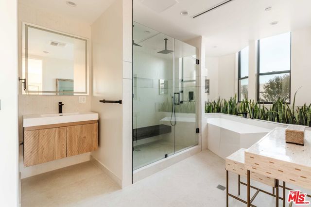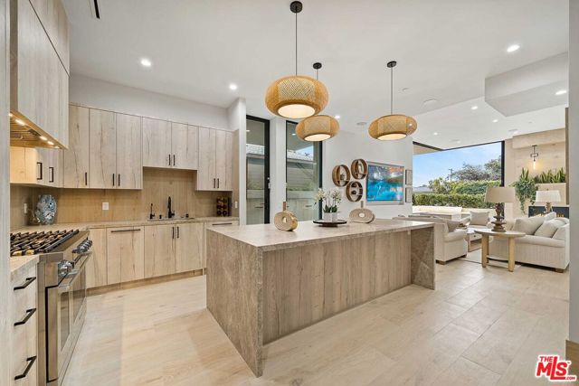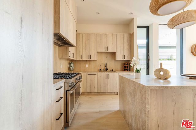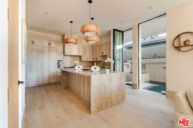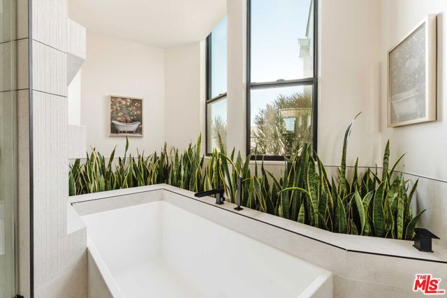 This newly built architectural home is set on a prime corner in Venice, West of Lincoln, and just seven blocks from the ocean. Designed by Alon Zakoot, the residence blends modern design with warm earth-tone finishes and organic materials throughout - capturing the essence of coastal living with seamless indoor-outdoor flow, natural light, and refined contemporary detail. A gated entry opens to a bright, airy interior layered with integrated greenery, creating a calm, biophilic atmosphere from the moment you arrive. High ceilings and dramatic floor-to-ceiling sliding glass doors enhance volume and openness, dissolving the boundary between interior and exterior spaces. The main living area features a fireplace and expansive black steel sliders that fully open to the indoor-outdoor pool with a sculptural water feature and spa - positioning the water just off the living room for a striking, resort-like experience. The kitchen is designed for both everyday living and entertaining, featuring high-end Dacor appliances, an oversized island with comfortable seating for 10, and a clean, modern aesthetic that balances function with elevated design. The first floor also includes a bedroom with a separate private entrance, ideal for a home office, guest suite, or flexible fourth bedroom. Upstairs offers three en-suite bedrooms, including a primary suite with a fireplace, private balcony, and a luxurious bathroom featuring a soaking tub, oversized shower, dual vanities, and a true spa-like ambiance. The upstairs family room/den opens to a lush second-floor garden with a fireplace, creating a rare private outdoor retreat. The expansive rooftop deck features an outdoor kitchen along with both dining and lounge seating areas, offering sweeping 360-degree views in every direction. In the winter months, snow-capped mountains are visible in the distance on clear days, adding a rare and beautiful natural backdrop to the coastal setting - completing this exceptional residence with an elevated California coastal living experience.