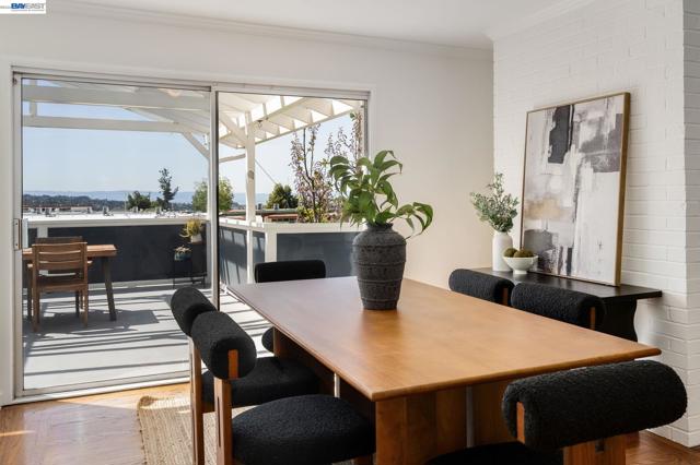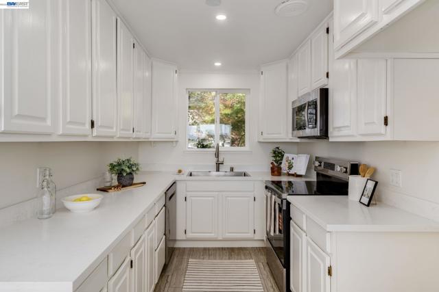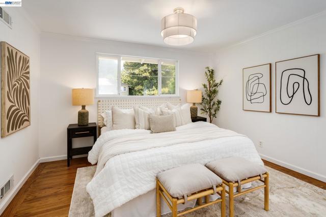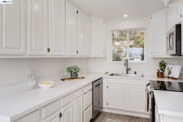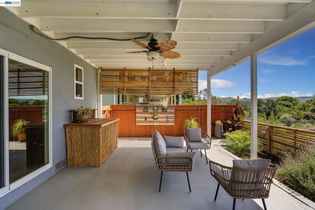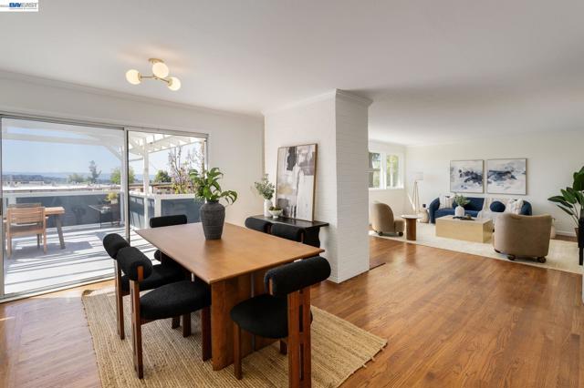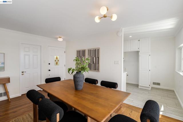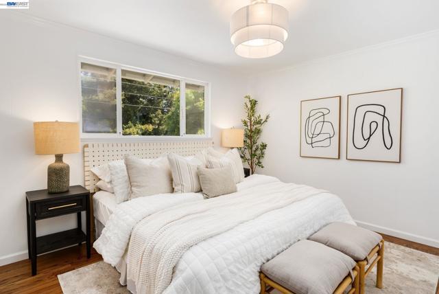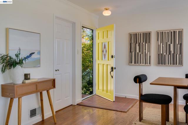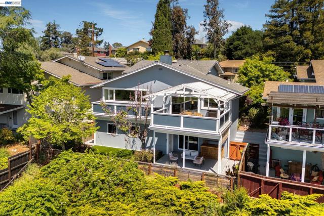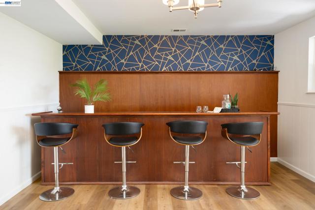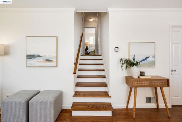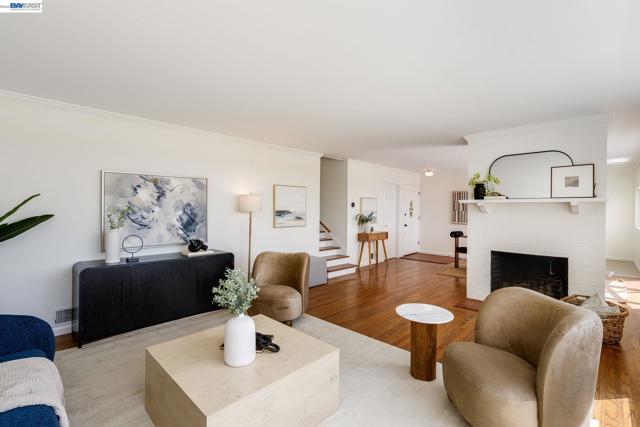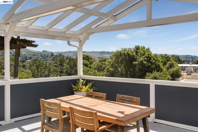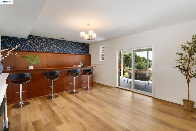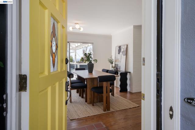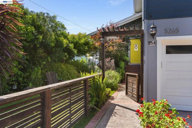 Tucked at the end of a quiet cul-de-sac, 5265 Winifred Dr. offers privacy, charm, and thoughtful updates throughout. A welcoming approach—lined with light posts and surrounded by mature greenery—leads to a home full of character, highlighted by a distinctive vining façade. Inside, a glass door opens to a spacious upper deck, creating a seamless extension of the living space—ideal for relaxing, entertaining, or enjoying sunset views. The main level features original hardwood floors, a bright and inviting living room, and a dining area that sits just off the kitchen—providing separation while maintaining a functional layout and easy access to the deck. The updated kitchen includes refinished cabinetry, quartz countertops, recessed lighting, and stainless steel appliances. Upstairs, three bedrooms include a primary suite with a refreshed bathroom featuring updated flooring, fresh finishes, and a new vanity. The hallway bathroom has been fully renovated with quartz shower walls, a new tub, modern fixtures, and updated flooring. Hardwood floors continue throughout the bedroom level. The lower levels offer a workshop area adjacent to the two-car garage and a dedicated laundry/utility room provide added functionality. A flexible bonus room with a custom bar, separate entrance, lower patio, and direct garden access—well suited for a home office, media room, or guest space. Located near trails, Castro Valley Marketplace, Lake Chabot Regional Park, BART, and major freeways, offering convenient access to shopping, dining, and commuting.