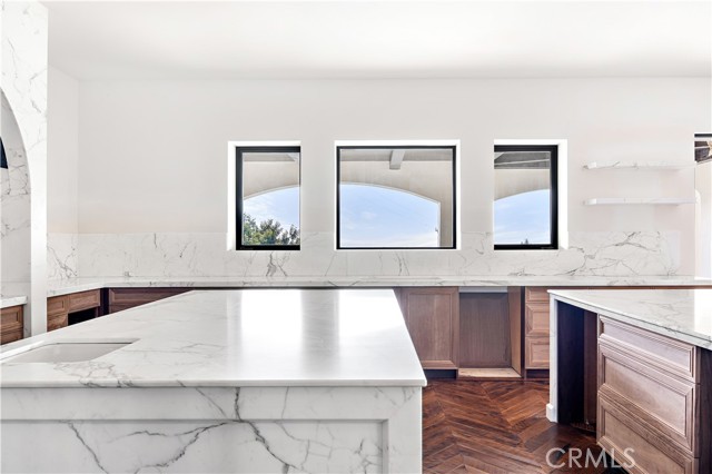 Rare new-construction luxury estate in highly sought-after Mar Vista Heights, Whittier, showcasing stunning Spanish Modern architecture blending timeless character with modern design. Situated on an 18,000+ sq ft lot, this exceptional residence offers approx. 4,602 sq ft of living space, including a beautifully designed outdoor patio. Nearly complete at 97%, allowing the opportunity to customize final landscaping and pool design. A dramatic 12-ft iron front door leads to a breathtaking arched entry with silver and gold leaf detailing and a custom marble lighting arch, setting a striking tone. Inside, soaring ceilings and an open-concept layout create a bright, seamless flow ideal for entertaining and everyday living. Features include 3 bedrooms, 3.5 baths, plus a versatile bonus room (4th bedroom/office/lounge). A formal dining room adds flexibility. The chef’s kitchen showcases walnut cabinetry, Italian finishes, dual marble islands, walk-in pantry, and a glass-enclosed wine room. The family room opens through expansive Fleetwood glass doors to panoramic views from Catalina Island to Downtown LA, delivering true indoor-outdoor living. Additional highlights include hardwood floors, marble bathrooms, spa-like primary suite, smart home system, central HVAC, and 2-car garage. A rare opportunity to own a nearly completed luxury home of this caliber in Whittier—schedule your private tour today.