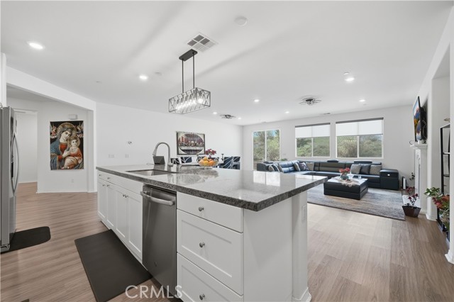 Single story home in the highly desirable Sycamore Creek community of South Corona, built in 2020 and offering just under 2300 square feet on an oversized lot, one of the largest in the neighborhood. This home checks a lot of boxes. Inside, you’ll find a clean, open concept layout with LVP flooring throughout, creating a cohesive and low maintenance living space. The kitchen is well designed with a large center island, abundant cabinetry, and opens directly to the main living area, making it ideal for both everyday living and entertaining. A versatile bonus space offers flexibility for a home office, playroom, media room, or potential fourth bedroom depending on your needs. The primary suite is privately situated and generously sized, complete with a walk in closet and a functional, well appointed bathroom. The backyard is a standout feature, offering beautiful mountain views that create a sense of openness and privacy you don’t often find. Additional features include leased solar, helping to improve energy efficiency and manage utility costs. With one of the larger lots in the community, there is plenty of space to design and customize your outdoor living. Sycamore Creek offers a true resort style lifestyle with multiple pools and spa, clubhouse, fitness center, parks, sports courts, and scenic walking trails, all set within a well maintained and thoughtfully planned community. Conveniently located with easy access to the 15 freeway, making commuting to Orange County, Temecula, and surrounding areas straightforward, while still enjoying a quieter, more scenic setting. Newer construction, functional layout, oversized lot, and views, all in one of South Corona’s most sought after communities.