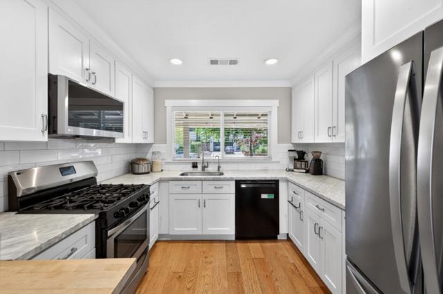 Fully renovated Cambrian corner-lot home with owner-owned solar, dual whole-home battery backup systems, and Tesla wall charger - rare at this price point. Home features wide-plank white oak engineered hardwood flooring, an updated kitchen with white shaker cabinetry, marble countertops, a subway tile backsplash, stainless steel appliances, and a butler's pantry. Oversized primary suite with dual sinks and updated en-suite bath. Additional improvements include copper plumbing, dual-pane windows, a 200-amp electrical panel, LED recessed lighting, and crown molding throughout. Backyard offers two access points, automated irrigation, and usable space for outdoor enjoyment. Located within walking distance to Farnham Elementary (lottery to Steindorf STEAM) and in Free Zones for Branham or Leigh High School. Convenient access to Highways 85 and 17. Pre-inspections completed (home, roof, termite). Section 1 clearance is partially completed. Disclosures on request.