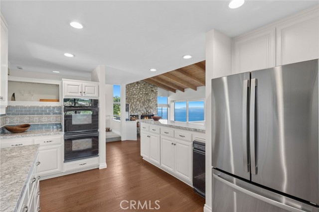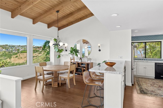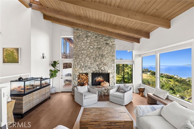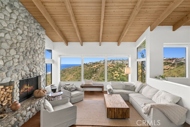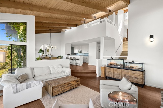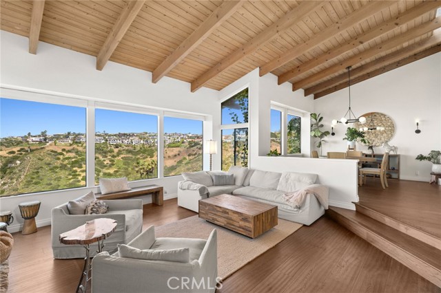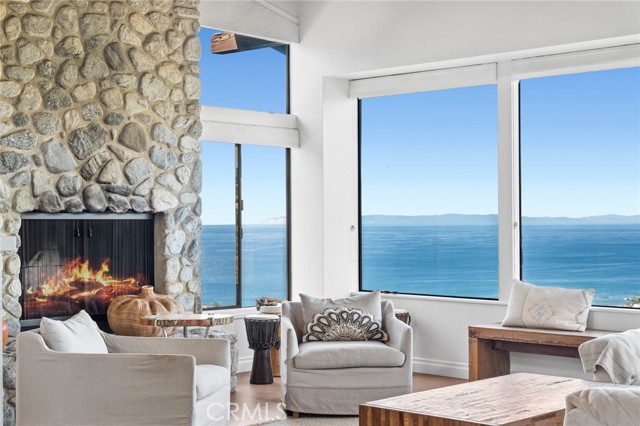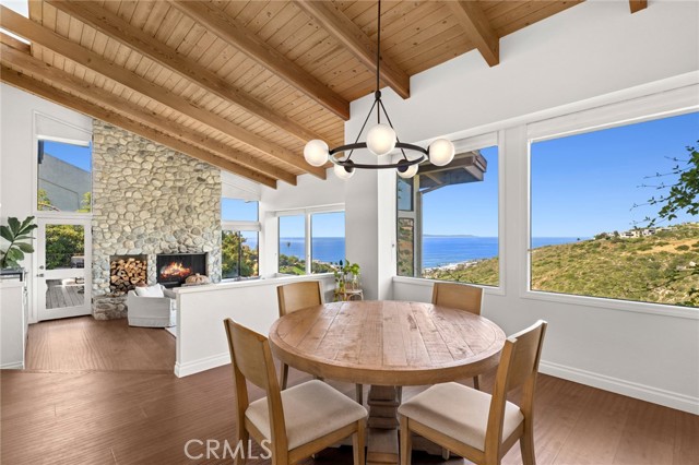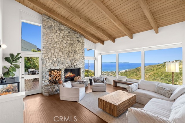 Embrace the premier coastal lifestyle of Laguna Beach where breathtaking ocean and white-water views extend toward Catalina Island beautifully framed by rolling green hills. From the moment you enter, the home is filled with abundant natural light and captivating ocean and hillside vistas that immediately draw your attention and set the tone for coastal living. The generous living room is highlighted by soaring ceilings, a cozy fireplace, and direct access to an expansive outdoor viewing deck creating an ideal setting for enjoying the ever-changing coastal backdrop. The open floor plan seamlessly connects the kitchen and dining areas, both thoughtfully positioned to capture sweeping ocean views, creating a setting that is equally suited for everyday living and effortless entertaining. The updated kitchen complete with upgraded appliances is designed for both intimate gatherings and larger-scale entertaining all while enjoying the surrounding views. This inviting home celebrates exceptional indoor-outdoor living featuring a spacious deck off the main living area and a private patio adjacent to the main level bedroom, offering multiple spaces to enjoy the coastal environment throughout the day and into the evening. On the main level, an oversized bonus room provides flexible living space, ideal for a media room, home office, or additional lounge area. At approximately 2,852 square feet, the residence includes four well-proportioned bedrooms, a bonus room, and two-and-a-half bathrooms. The primary suite offers tranquil ocean views directly from the bedroom, a walk-in closet, and a peaceful private setting that enhances the overall sense of retreat. A direct-access three-car garage, along with a driveway, provides ample parking and storage. Ideally situated in one of Laguna Beach’s most sought-after areas, the home is conveniently located in close proximity to top-rated schools, renowned restaurants, shopping, and local amenities. The ocean is just moments away, with easy access to scenic parks and trails, as well as the restaurants, shops, and galleries of Laguna Beach. With its thoughtful design and exceptional setting, this home presents an unparalleled opportunity to experience the very best of coastal living. This is Laguna Beach living at its finest.