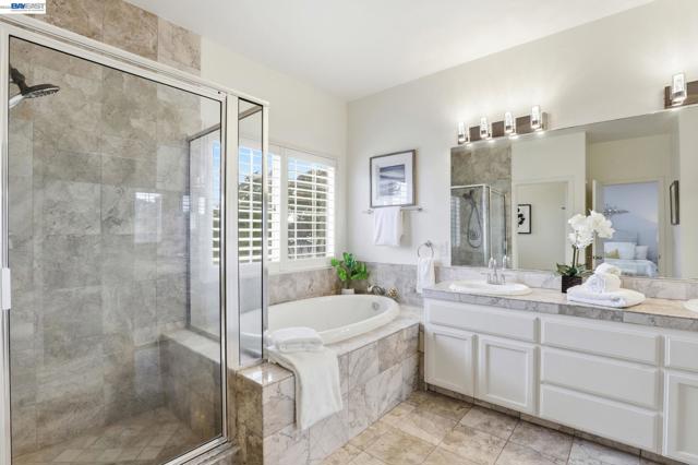 Welcome to your new home at Portola Ranch! This charming North East facing home is situated in a picturesque community, just minutes away from the lively downtown of Morgan Hill. This home boasts 4 bedrooms, 2.5 bathrooms with 2,560 square feet of living space. Enjoy the open and spacious floor plan with vaulted ceilings and an abundance of natural light. The dramatic vaulted ceilings, separate family and living rooms, and a formal dining room create a spacious and inviting atmosphere. A spacious kitchen with granite countertops, a breakfast bar, ample natural light, and plenty of cabinet space. Stay comfortable year-round with central AC. Additional features include 6-panel doors, recessed lighting, an inside laundry room, and an open-air hallway upstairs with abundant built-in storage. The high ceilings in all bedrooms add to the sense of space, while the primary bedroom offers a luxurious bathroom with a soaking tub and a generous walk-in closet. The private backyard is a tranquil retreat and the home faces a lush park. The Portola Ranch community also offers a sparkling pool, a small clubhouse, and lush green spaces for your enjoyment.