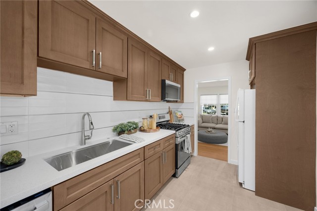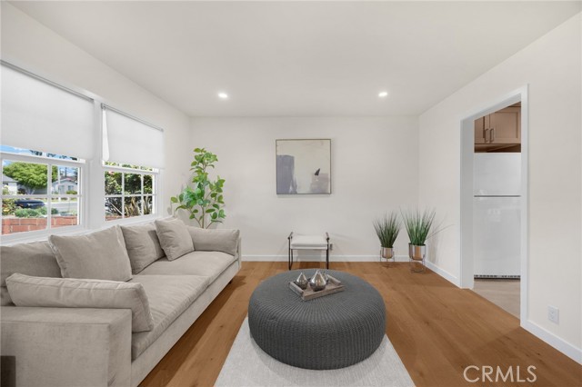 Charming single story home! Beautifully remodeled with 2 beds, 1 bath and a large bonus room with backyard access. Walk into the living area with warm neutral tones, new engineered hardwood floors and recessed lights. Kitchen is tastefully updated with wood cabinets, large sink, new countertops, backsplash, new microwave and dishwasher. Spacious bedrooms with new carpets and recessed lights. Updated bathroom with tasteful finishes. Spacious backyard with covered carport that leads to the garage. The home has newer roof, doors, upgraded service panel, dual pane windows, newer water line and water heater. This is an amazing home with so much great potential!