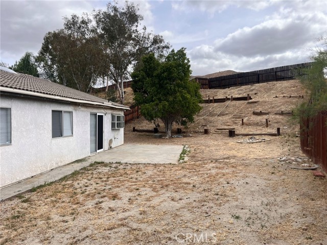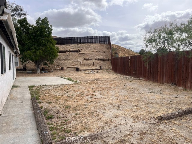 One story home located on the north part of Moreno Valley with view to the M Mountain from the front yard. This home is tucked into a cul de sac, but opens to a 16,117 sq ft lot with lots of potential! The interior has all new paint and flooring and an updated kitchen with new cabinetry, marble type countertops, farm sink, stainless steel stove and hood. The garden window above the sink offers view to the backyard that slopes up, creating a very private property. Great floorplan with 1,568 sq ft has 4 bedrooms and 2 full baths that have been updated. Skylight windows in dining and bathroom create natural light. The 2 car garage offers an extra area that offers multiple uses, such as a work room, additional storage, or can eventually be closed to create an additional room.