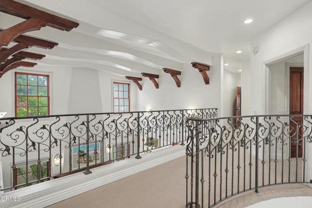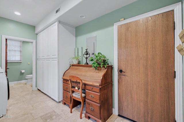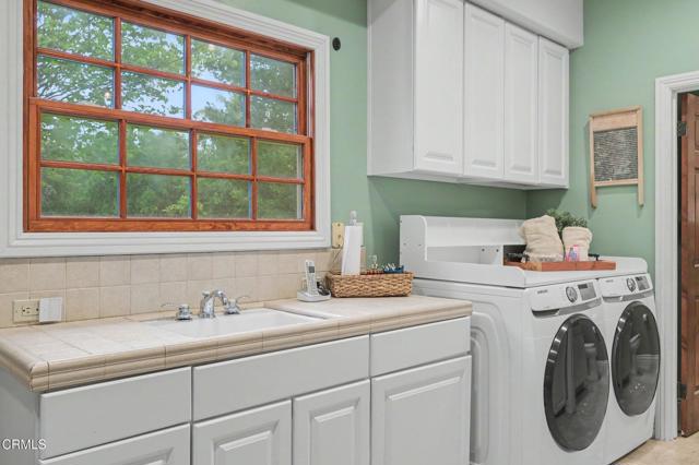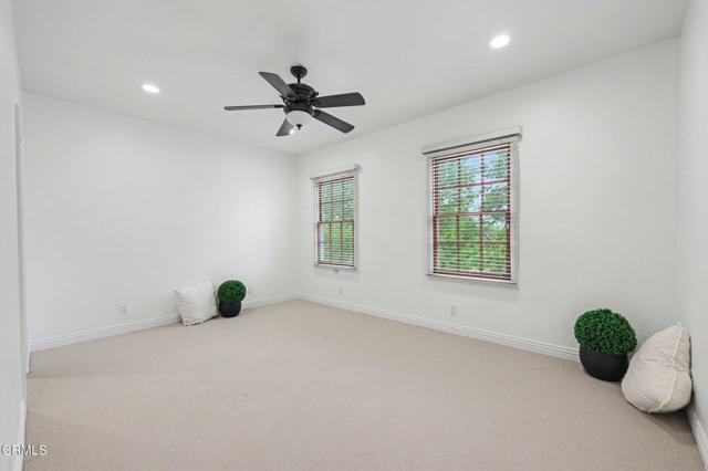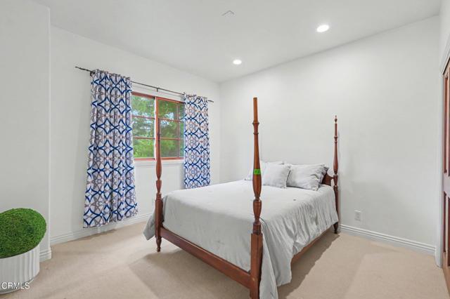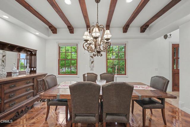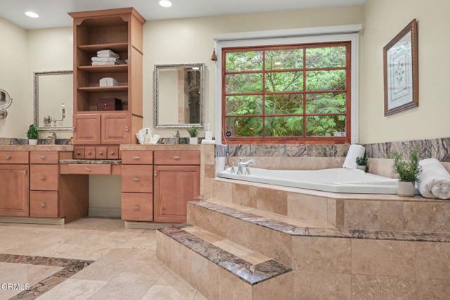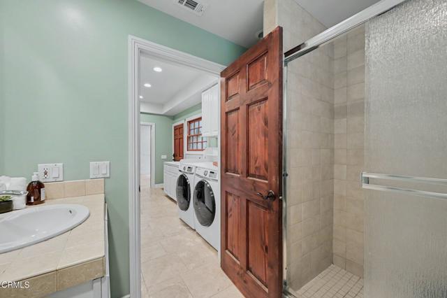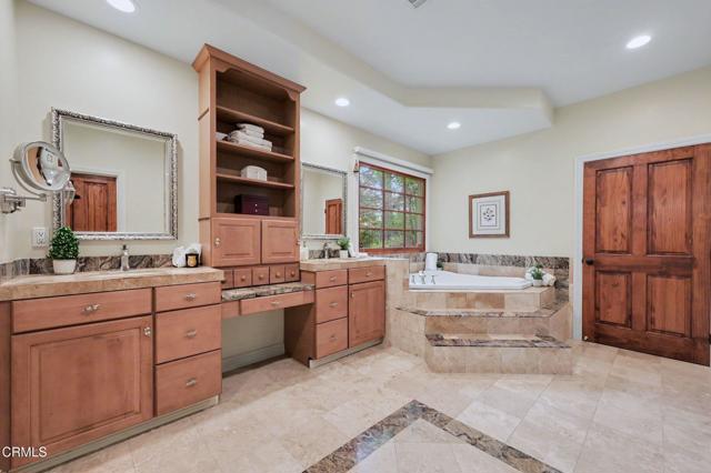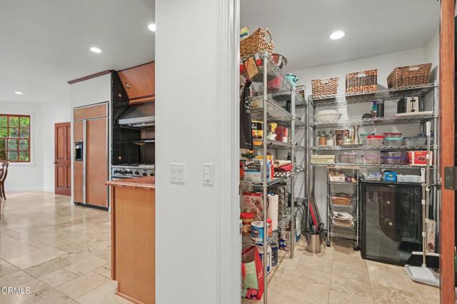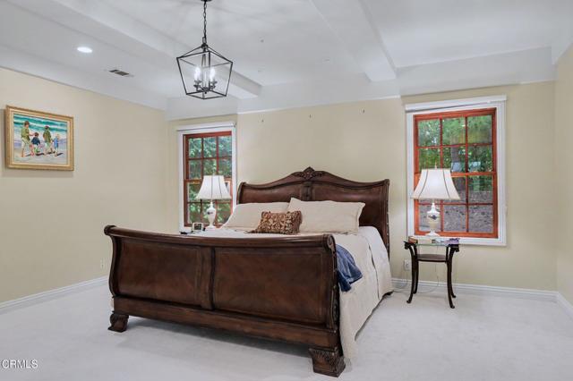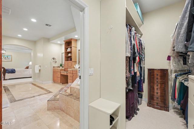 This extraordinary 5 bed, 4.5 bath custom estate is located on over an acre of land in Bella Vista, one of Ventura County's most desirable gated communities. Designed with both flexibility and everyday living in mind, the home features a highly sought-after primary suite on the main level, along with a spacious downstairs family room--ideal for single-level living if desired. The primary suite includes its own fireplace, a large walk-in closet, and an en-suite bath with custom vanities and a Jacuzzi tub. The lower level showcases a dynamic, open-concept layout with a double-height vaulted family room that flows into the kitchen. The kitchen features a large breakfast bar with seating for four, a breakfast nook, ample storage, and a walk-in pantry, and connects to the formal dining room overlooking the front landscaping. A separate formal living room with a fireplace provides an additional gathering space. Upstairs, four additional bedrooms are complemented by a versatile loft-style bonus space, perfect for a playroom, office, or additional lounge area, complete with its own window and generous attic storage.Outside, the grounds are a standout feature, with mature landscaping and a variety of fruit trees blooming for your enjoyment. The backyard includes an extensive built-in barbecue area and a large open space that can accommodate a pool, spa, pickleball court, or outdoor events. The property includes both an attached two-car garage and a detached two-car garage, offering flexibility for additional parking, a workshop, or office space. A circular driveway and mature front trees enhance both privacy and curb appeal. Located in Camarillo, Bella Vista offers convenient access to nearby golf courses including Las Posas Country Club, Sterling Hills, and Spanish Hills, as well as easy access to both Los Angeles and Santa Barbara.With fewer than 100 custom homes in this community, Bella Vista offers a rare sense of privacy, tranquility, and timeless appeal. Offered for the first time since its original construction, this home presents a unique opportunity in a highly sought-after community.