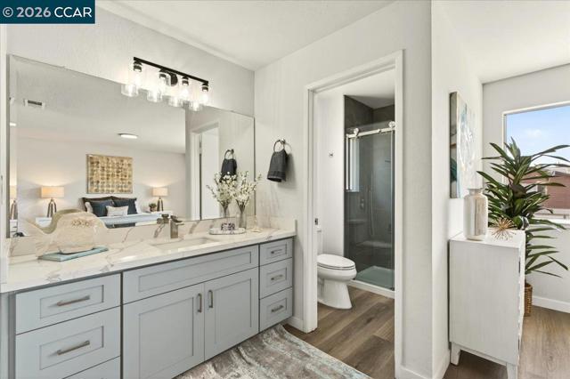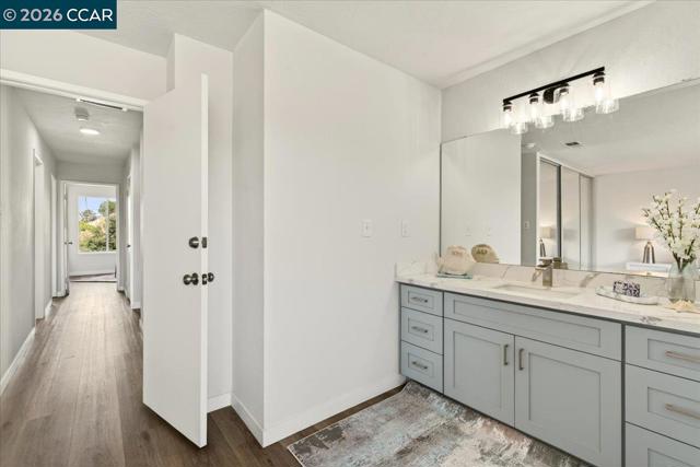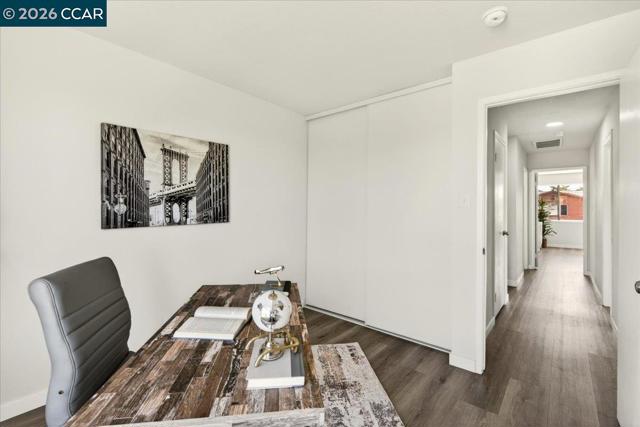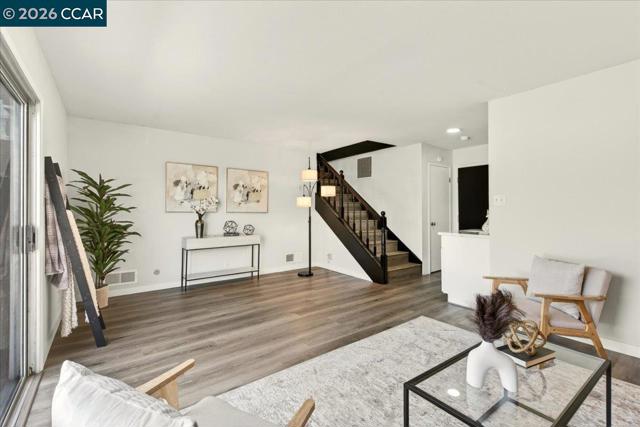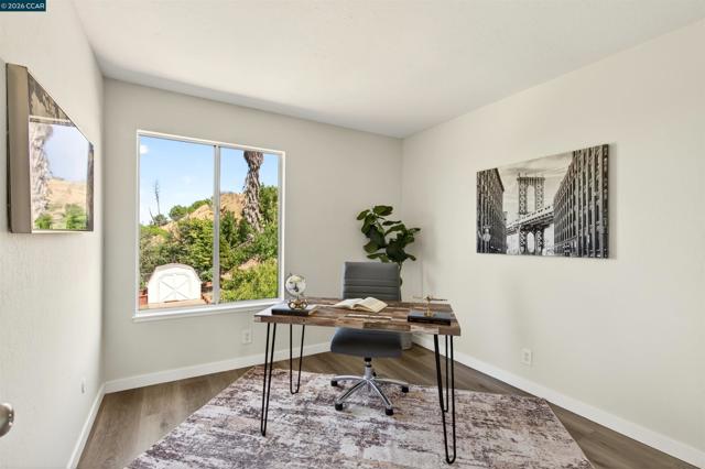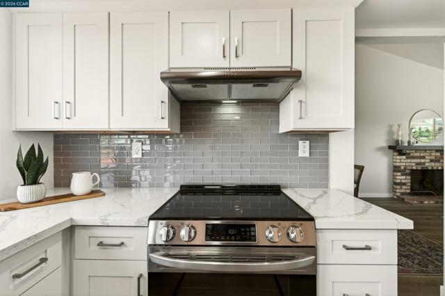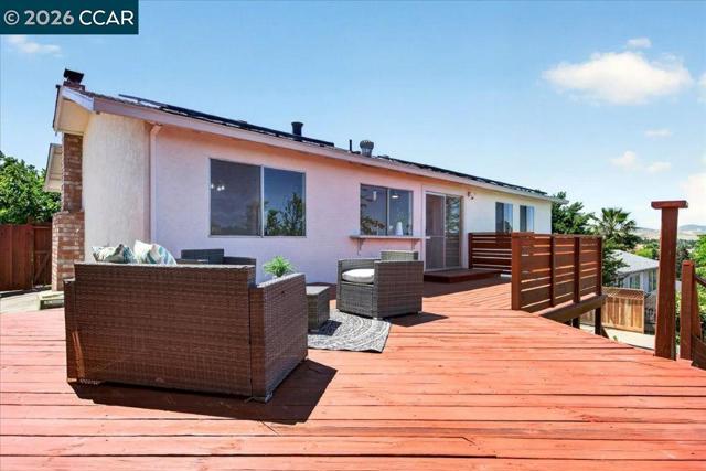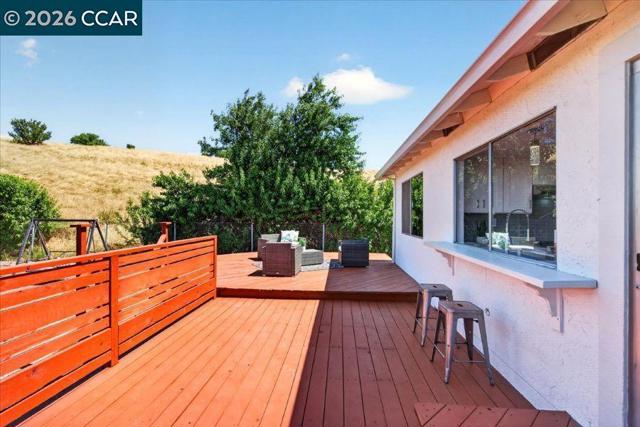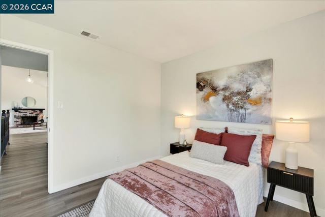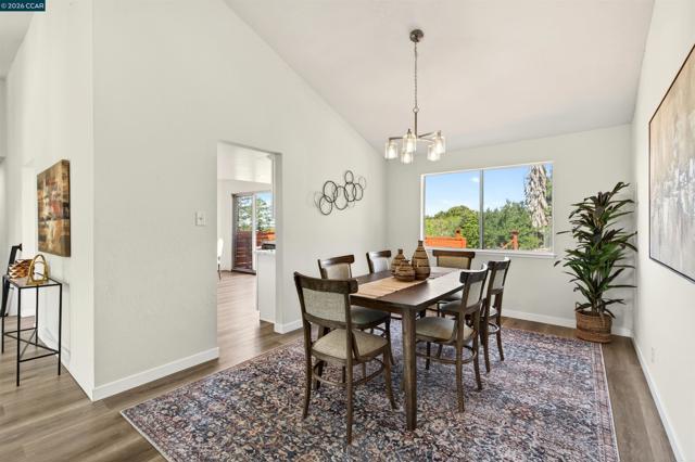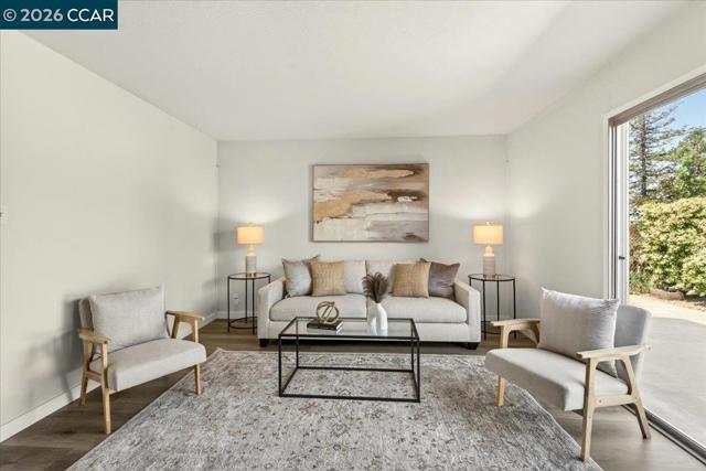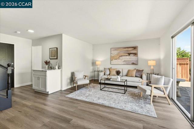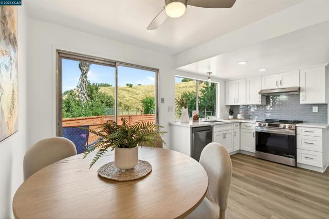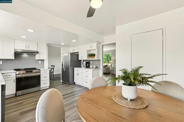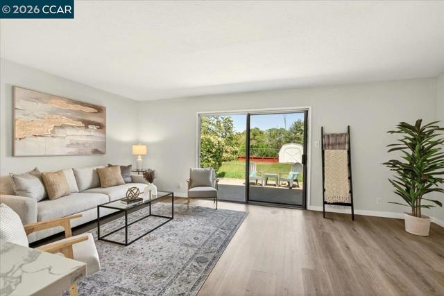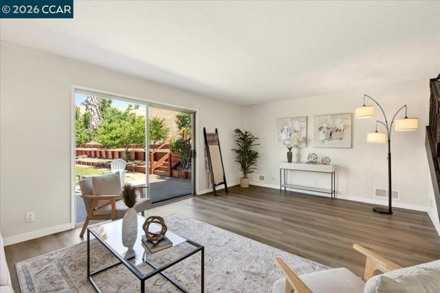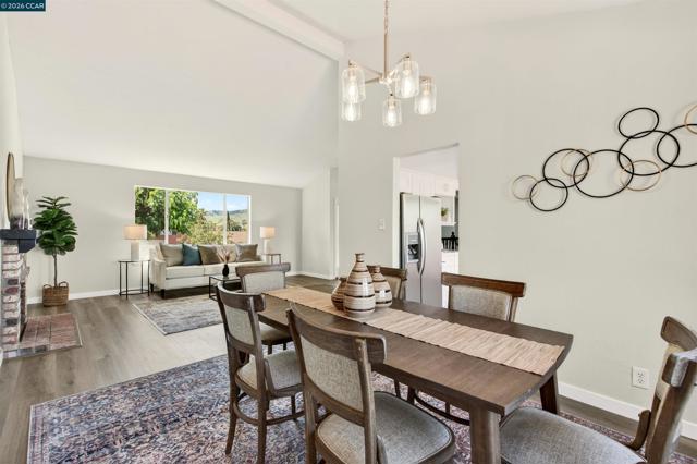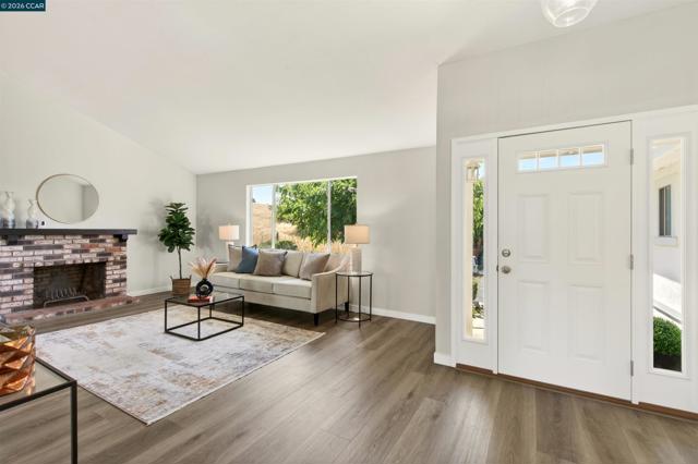 This approximately 2,075 square foot home offers four bedrooms and two and a half bathrooms. The lush landscaping and spacious exterior create an inviting entryway, leading into a home with a thoughtful, open layout filled with abundant natural light and hardwood flooring. The fireplace feature adds warmth and ambiance to the open concept living area. The spacious kitchen boasts abundant cabinetry, a sleek backsplash, and ample counterspace, perfect for the home cook. Adjacent to the kitchen is a flexible space that could serve a variety of purposes. The primary bedroom provides a peaceful retreat with ample storage and an elegant, spacious bathroom. The additional bedrooms offer comfortable, well-appointed accommodations. Stepping outside, the sizable, well-maintained yard provides ample outdoor space and seating for relaxation or entertaining. With partial views of Mt. Diablo, this home offers the ideal blend of indoor and outdoor living. The property also features ample parking, making it convenient for residents and guests alike.