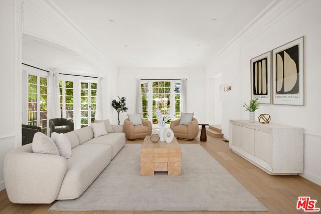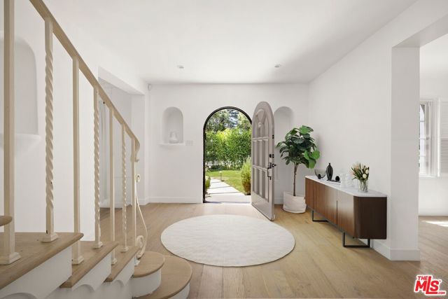 A beautifully reimagined Spanish on coveted Rodeo Drive, set on an expansive nearly 17,000 sq ft lot. This 5-bedroom, 6-bath residence offers all en-suite bedrooms and a seamless indoor-outdoor flow with walls of glass opening to the grounds. A newly redone kitchen anchors the home, complemented by dedicated formal dining, family, and living rooms. Thoughtfully designed, the layout includes three bedrooms upstairs with a flexible bonus room, two bedrooms on the main level, and a detached studio ideal for a gym, office, or creative space. The park-like setting features a large grassy yard, newly resurfaced pool, and ample parking with a driveway and garage.