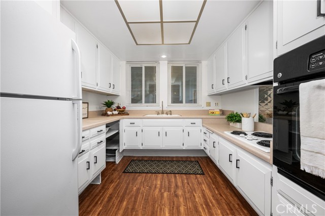 Move-in ready 2-bedroom, 2-bath downstairs unit featuring an enclosed patio plus an additional concrete patio for expanded outdoor living. Inside, you’ll find expansive laminate flooring and fresh paint throughout, creating a clean, modern feel. The kitchen has been thoughtfully updated with new hardware and paint. Guest bathroom offers a new light fixture, an upgraded vanity with ample storage, and its own shower. Down the hall, the thoughtfully designed floor plan leads to a private primary suite complete with a shower/tub combination, wainscoting, a refreshed vanity, and a spacious bedroom that easily accommodates larger furnishings. Additional highlights include double-pane windows throughout and versatile living space to suit a variety of needs. SENIOR COMMUNITY-OFFERS THE FOLLOWING AMENITIES: 9 Hole Golf Course, Swimming Pool, Jacuzzi, Gym, Table Tennis, Shuffle Board, Billiards, Pickle Ball, and Bocce Ball courts. Amphitheater, 6 Clubhouses featuring: Art Room, Sewing, Crafts, Wood Shops, Lapidary, Pool Tables, Over 200 Clubs, LWSB is a Security Guard-Gated Community. Also Library, Friends of Library Bookstore, Credit Union, Health Care Center and Pharmacy. (CARPORT 5, SPOT 53).