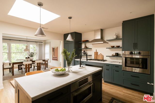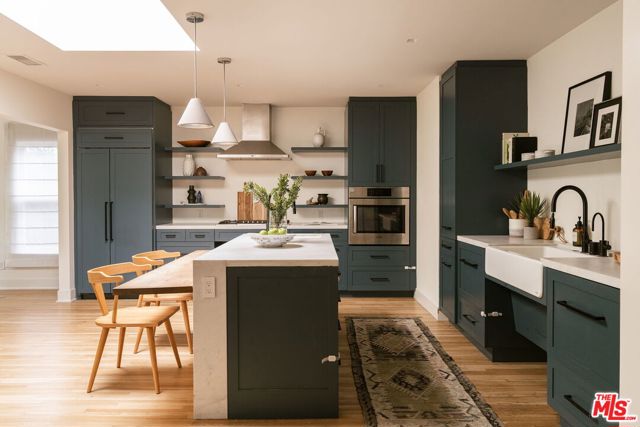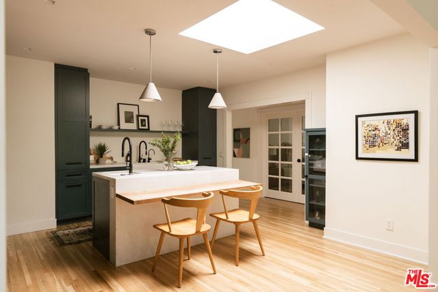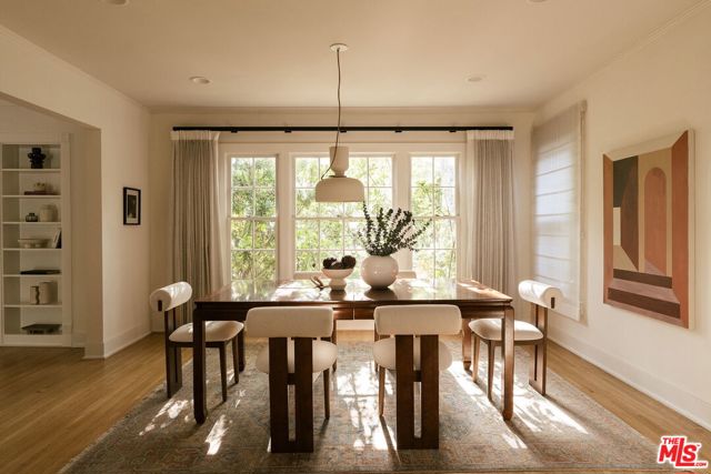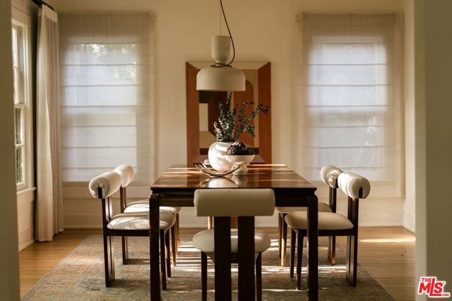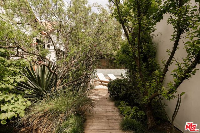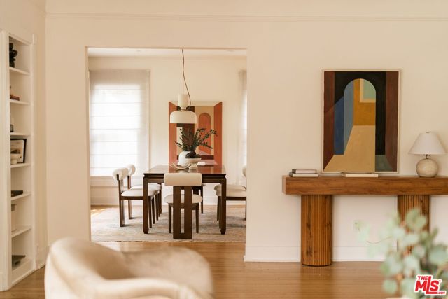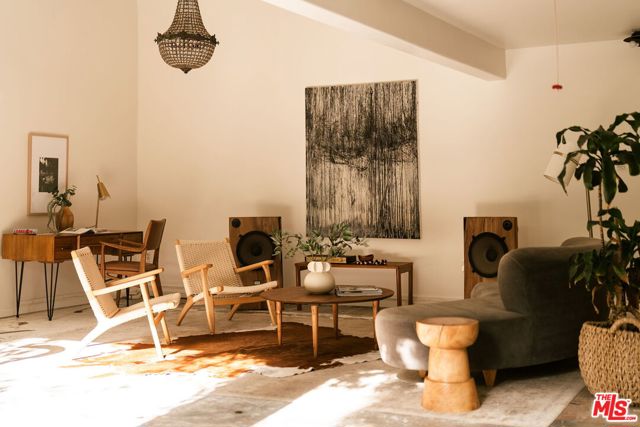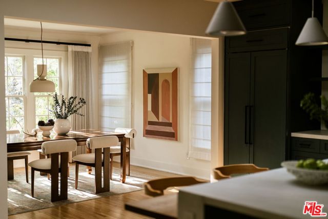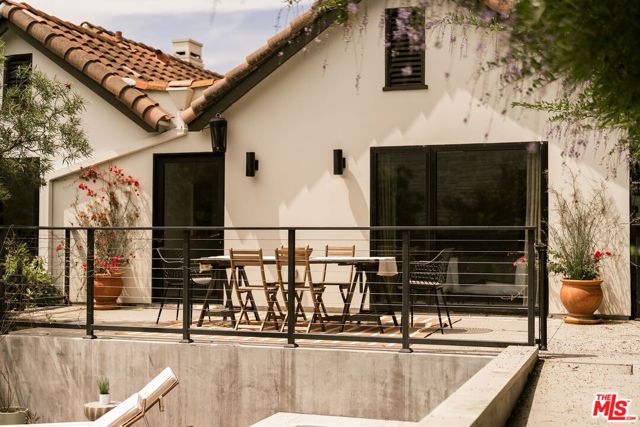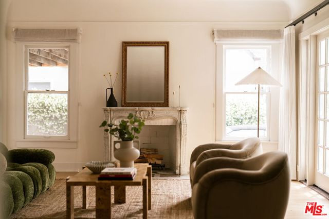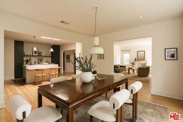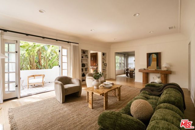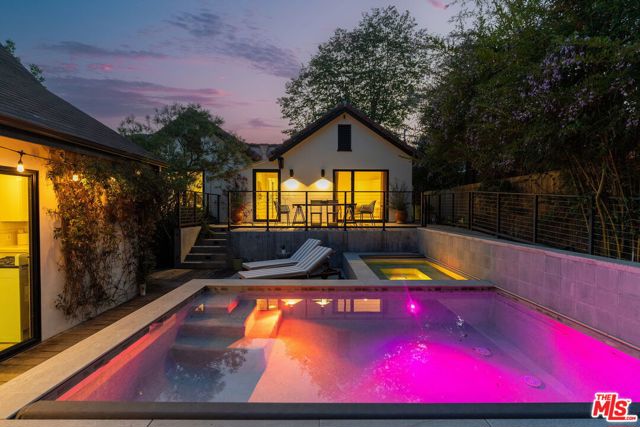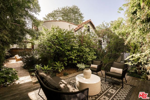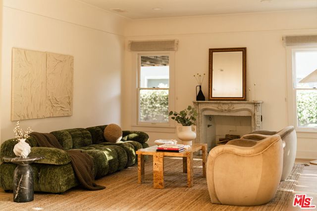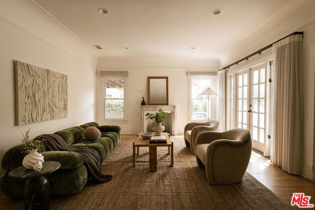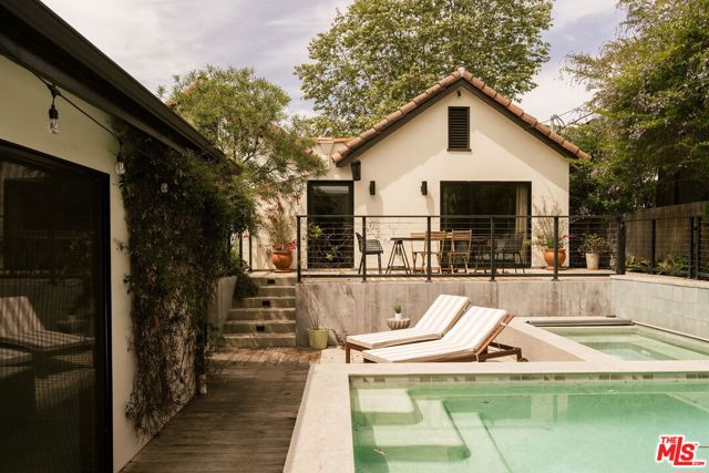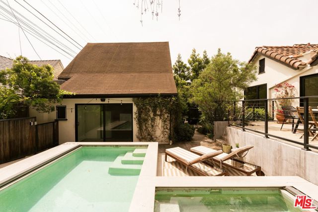 Behind a private hedge-lined entry in the heart of Larchmont Village, this extraordinary reimagined 1920s historic Spanish is a study in timeless architecture and cutting-edge design. A rare home where every material, finish, sightline, and source of light has been considered with intention, creating spaces that feel both elevated and deeply livable. Inside the main residence, three bedrooms and three baths unfold through warm, sun-washed interiors where natural light moves beautifully throughout the day, casting across hardwood floors and illuminating each room with a quiet sense of drama. Formal living and dining spaces feel refined yet inviting, while the kitchen is a true centerpiece, anchored by skylights, custom cabinetry, premium appliances, and a sculptural oversized island designed for both daily living and gathering. Two ensuite bedrooms offer privacy and comfort, while a beautifully designed guest powder room feels lifted from a boutique hotel. The primary suite is a true retreat, expansive and serene with garden outlooks and a luxurious sense of calm. Beyond the main home, the backyard opens into a private resort-like setting with multiple areas for dining, lounging, and entertaining surrounded by lush mature landscaping. A striking detached converted garage suites perfectly as a guest residence and rises beside the pool and spa, defined by soaring ceilings, dramatic scale, glass garage doors, its own kitchen, bath, and lofted sleeping quarters. Distinctive, flexible, and unforgettable, it is a space rarely found and impossible to replicate. Just moments from the beloved shops and cafes of Larchmont Village, this is a singular Los Angeles property where historic character and modern artistry exist in perfect balance.