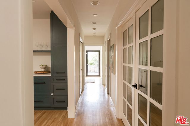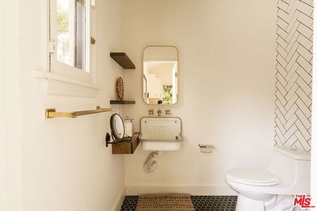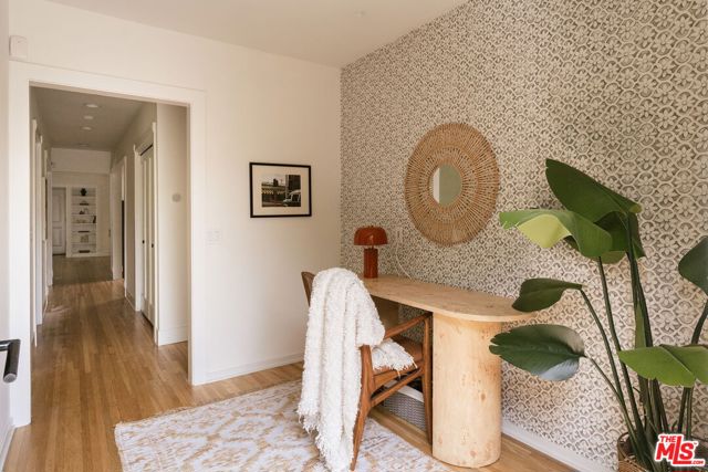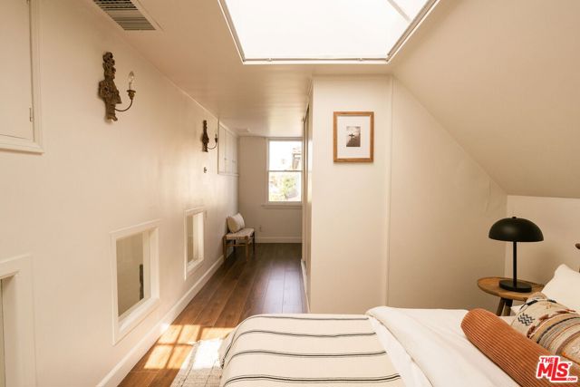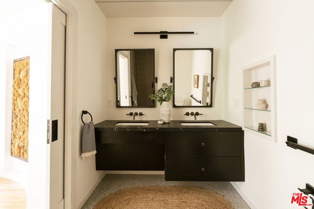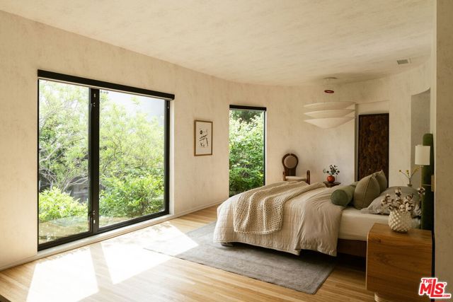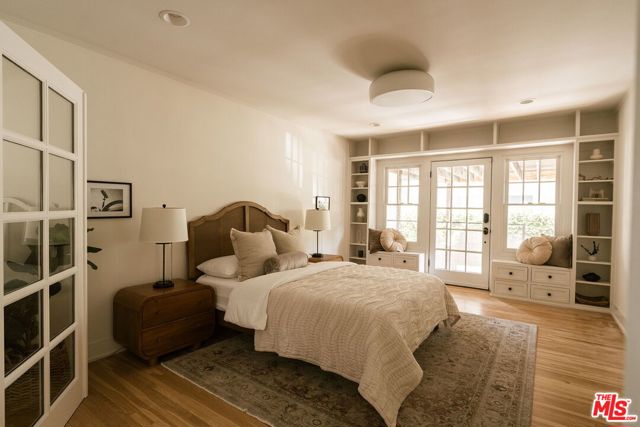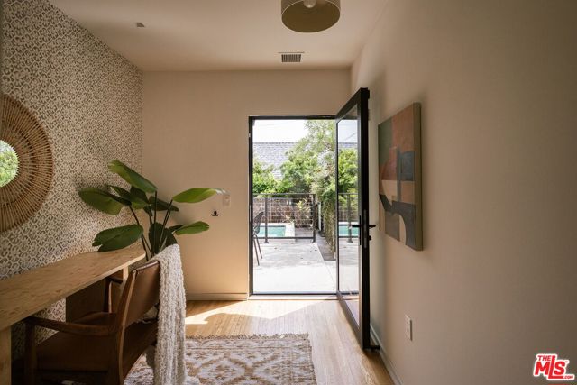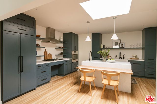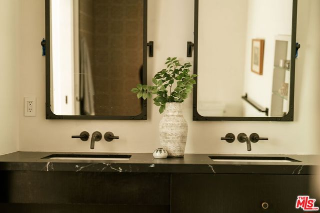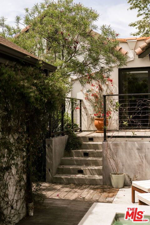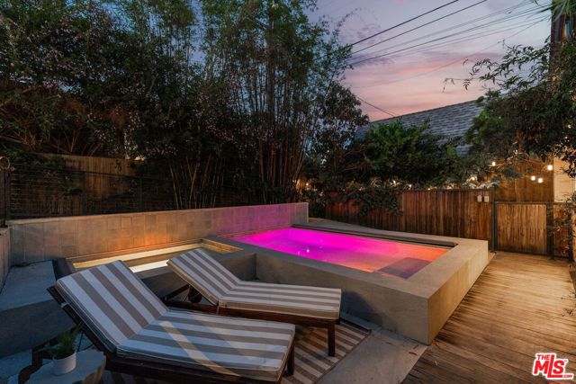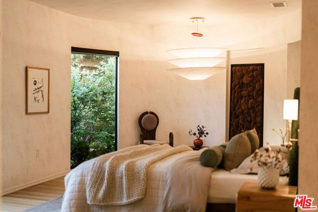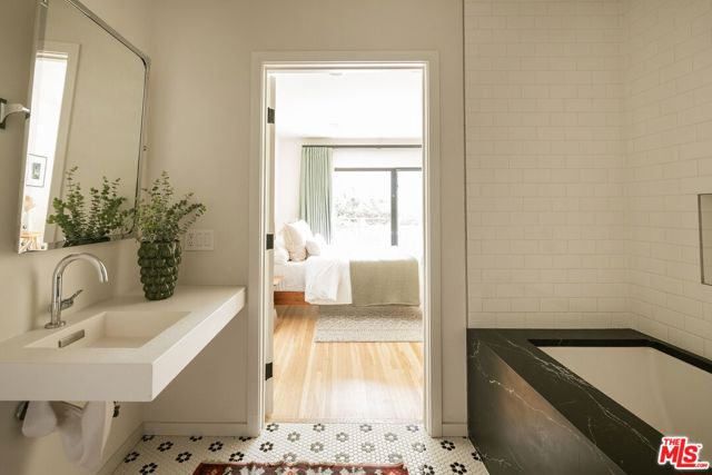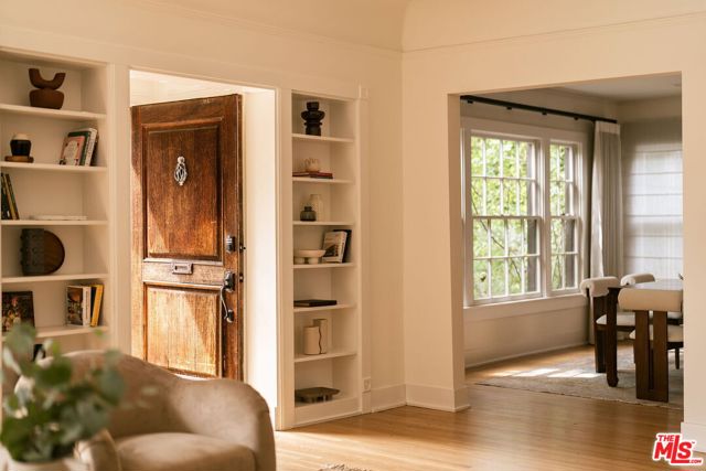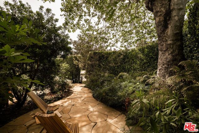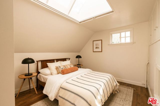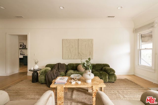 Behind a private hedge-lined entry in the heart of Larchmont Village, this extraordinary reimagined 1920s historic Spanish is a study in timeless architecture and cutting-edge design. A rare home where every material, finish, sightline, and source of light has been considered with intention, creating spaces that feel both elevated and deeply livable. Inside the main residence, three bedrooms and three baths unfold through warm, sun-washed interiors where natural light moves beautifully throughout the day, casting across hardwood floors and illuminating each room with a quiet sense of drama. Formal living and dining spaces feel refined yet inviting, while the kitchen is a true centerpiece, anchored by skylights, custom cabinetry, premium appliances, and a sculptural oversized island designed for both daily living and gathering. Two ensuite bedrooms offer privacy and comfort, while a beautifully designed guest powder room feels lifted from a boutique hotel. The primary suite is a true retreat, expansive and serene with garden outlooks and a luxurious sense of calm. Beyond the main home, the backyard opens into a private resort-like setting with multiple areas for dining, lounging, and entertaining surrounded by lush mature landscaping. A striking detached converted garage suites perfectly as a guest residence and rises beside the pool and spa, defined by soaring ceilings, dramatic scale, glass garage doors, its own kitchen, bath, and lofted sleeping quarters. Distinctive, flexible, and unforgettable, it is a space rarely found and impossible to replicate. Just moments from the beloved shops and cafes of Larchmont Village, this is a singular Los Angeles property where historic character and modern artistry exist in perfect balance.