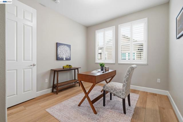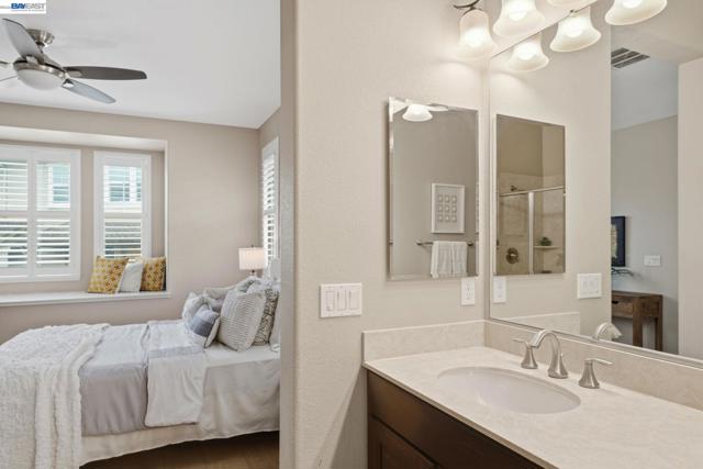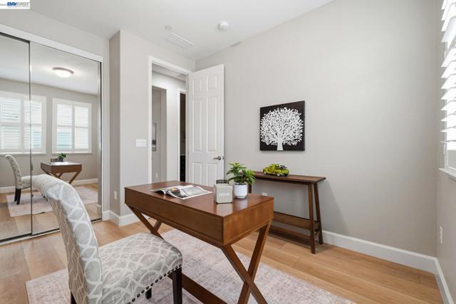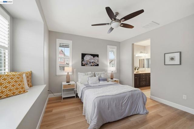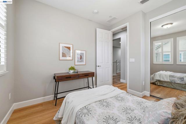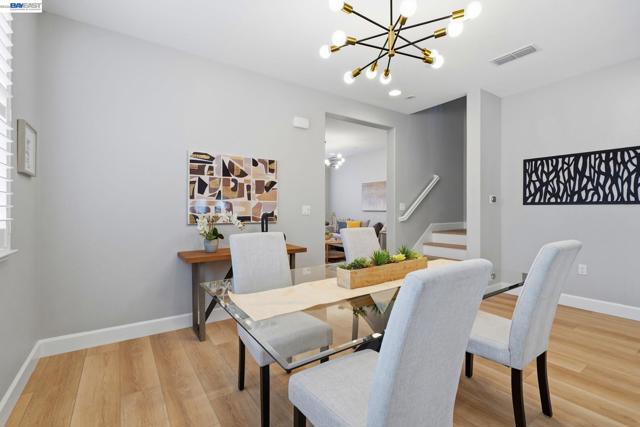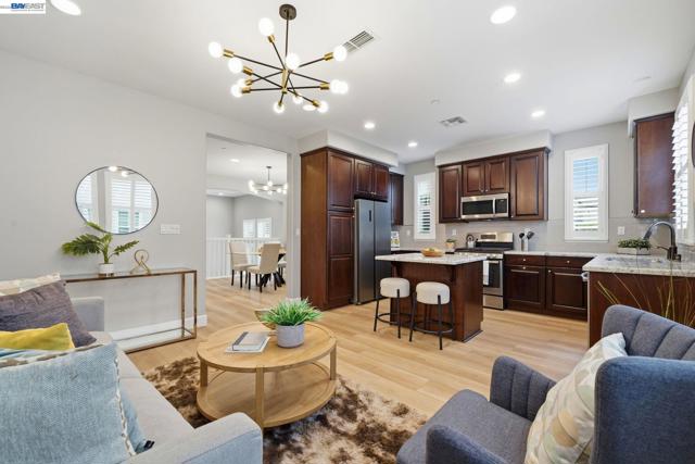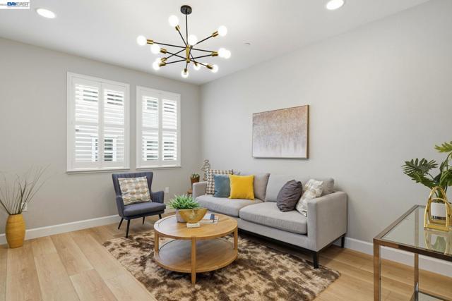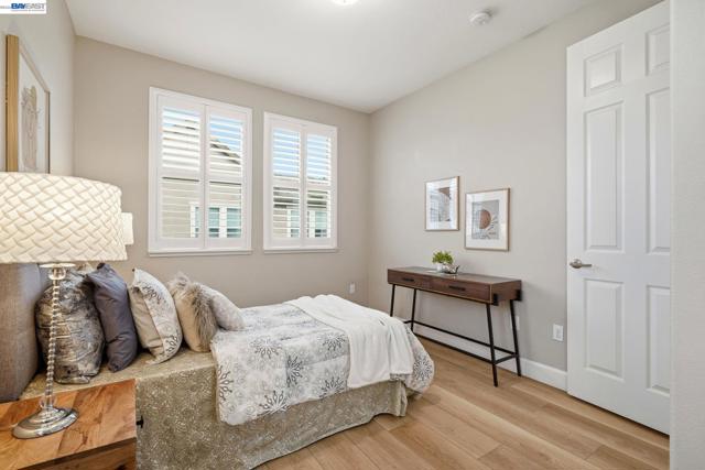 CORNER UNIT! Beautifully maintained condo style townhouse in the sought after Portola Commons community with children's play area and courtyard. Minutes away from Downtown, restaurants, shopping, parks, trails, easy access to freeway and Bart. BRAND NEW engineered wood flooring throughout, recessed lighting, bidets, plantation shutters, designer paint with spacious living room with access to front porch and half bath. The nice kitchen comes with granite counters, stainless steel appliances and center island. Primary retreat upstairs is complete with walk-in closet, en-suite bathroom, with dual sinks and shower stall. Two bedrooms share a hall bathroom. Upstairs laundry! Large storage room on first floor. 2-car attached garage with storage closets, tankless water heater, electric car charger, 3 zone HVAC system and OWNED solar panels..... WELCOME HOME!