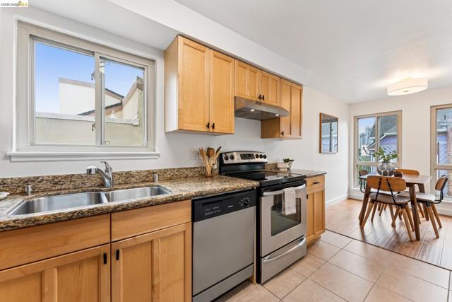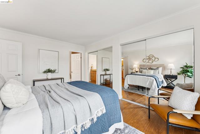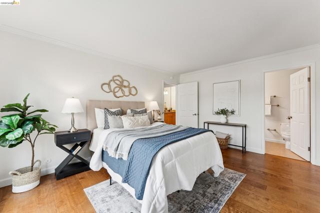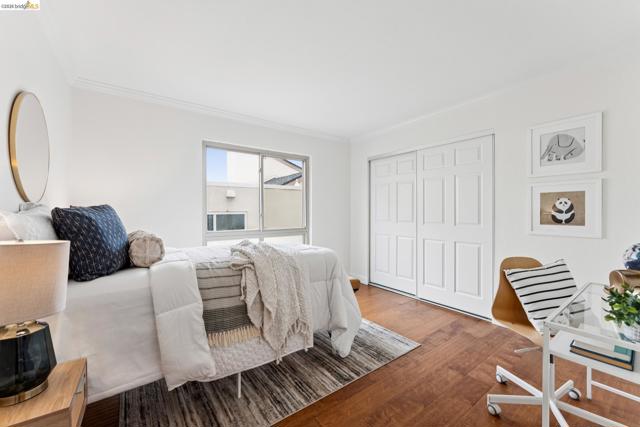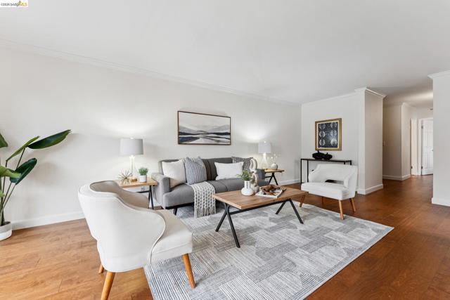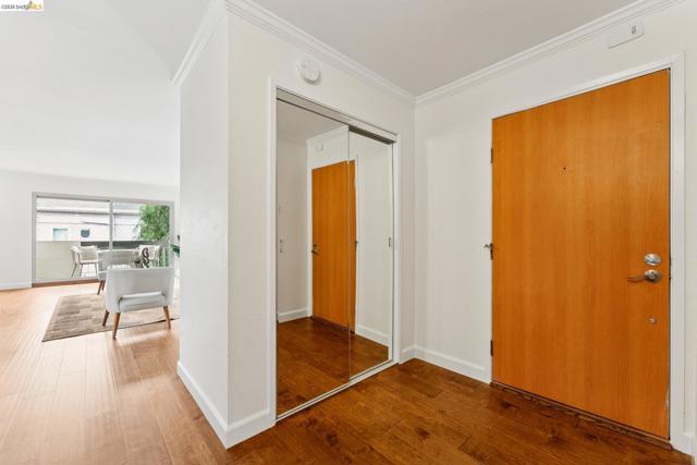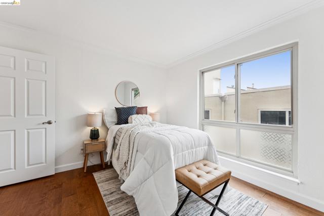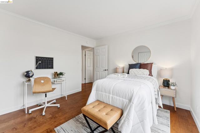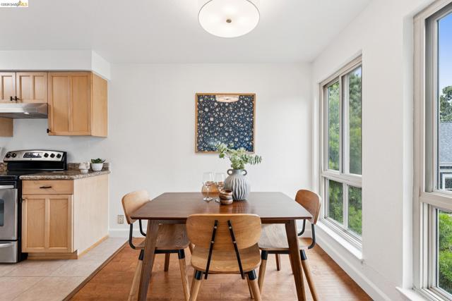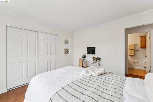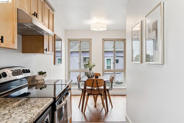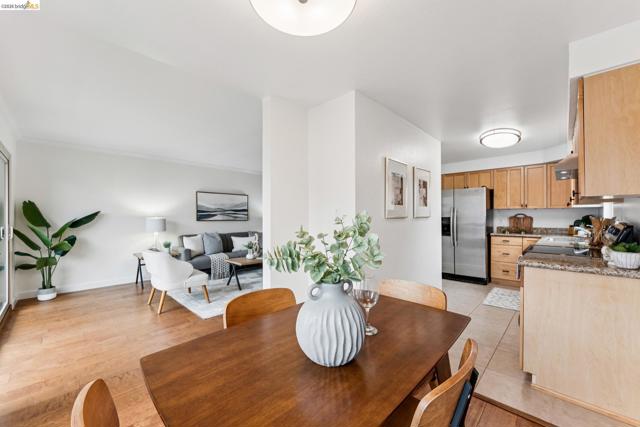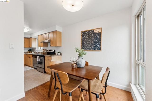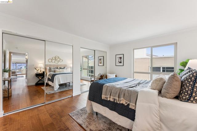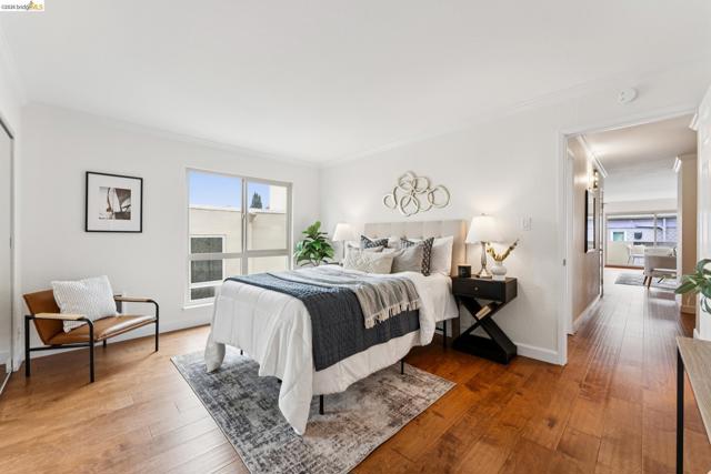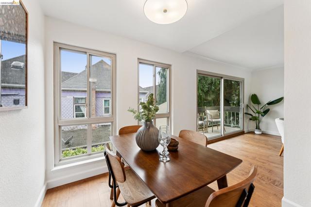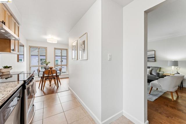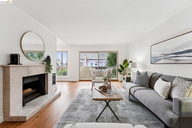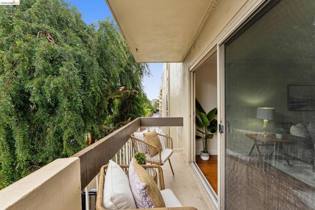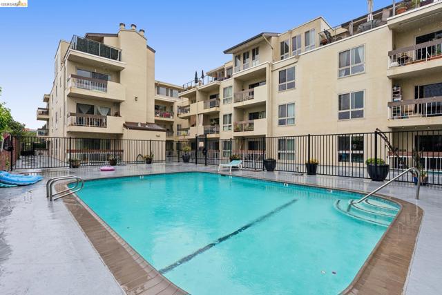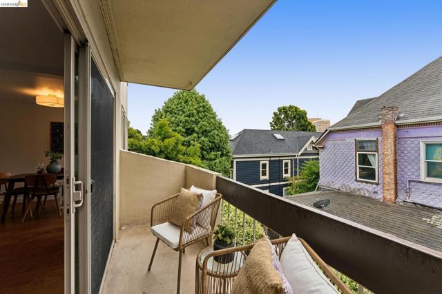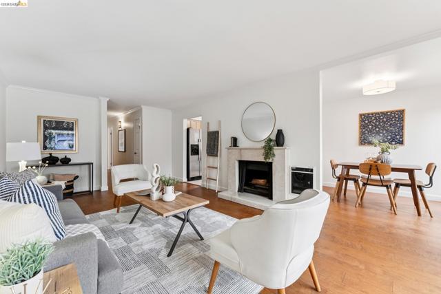 Welcome to this sun filled 2 bedroom, 2 bath corner condo in the desirable Fairmount Villas community. Positioned on the quiet side of the building, this second floor home offers a rare blend of privacy, natural light, and effortless living. Step inside to an inviting layout featuring engineered wood flooring, fresh interior paint, and large windows that brighten every room. The spacious living and dining areas flow easily into a well appointed kitchen with stainless steel appliances and durable tile flooring. Both bedrooms are generously sized, including a primary suite with its own en suite bath and abundant closet space throughout the home. Enjoy the convenience of common laundry just across the hall, one deeded parking space, and an HOA that covers water and garbage, making this truly low maintenance living. Residents also have access to a community swimming pool, perfect for warm East Bay days. The location is a standout — moments from Whole Foods, Sprouts, Saturday Farmers' Market, cafés, and restaurants, with 19th St. and MacArthur BART nearby for easy commuting. Quick access to 580 and 980 puts the entire Bay Area within reach. Spend weekends exploring Lake Merritt, downtown Oakland, Piedmont Ave., and other vibrant neighborhood districts just minutes away. A bright, well kept home in a central, walkable location with a Walkscore of 93 — this Fairmount Villas condo is an ideal opportunity for anyone seeking comfort, convenience, and the best of Oakland living.