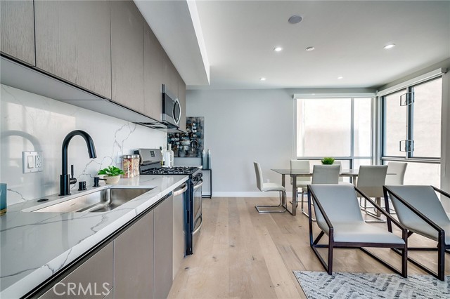 Stunning design and modern luxury are uniquely embodied in this 2-bedroom 2 bath Condo with 1300 SF of high-end living. This is a one-of-a-kind home in a high-performance building in the heart of West Hollywood. It's interior was tastefully designed by a highly sought-after interior designer. Unobstructed views from this condominium are truly unparalleled, and include walking distance to many shops, restaurants and stores at West Hollywood Gateway. Every detail was carefully selected and quality crafted. European oak floors in all rooms except bathrooms, hidden mechanical's, a climate-control system, high-tech security system, and spacious bedrooms. Entertain in grand style in this inviting living room graced large open windows with mesmerizing views. Exquisite top-of-the-line chef's kitchen is clad with premium finishes and fixtures including custom Melamine cabinets, Calcutta counters, and professional-grade appliances. Sliding glass doors in the dining area showcase views while opening up the home to even more light and air. Spill out to the awe-inspiring terrace. The master bedroom is the ultimate retreat complete with a mosaic tiled stand up shower. Built in 2019, Cali-West is a modern state of the art, pet-friendly building in the heart of fashionable WEHO. Private gated parking is included with this amazing property. Schedule your tour today!