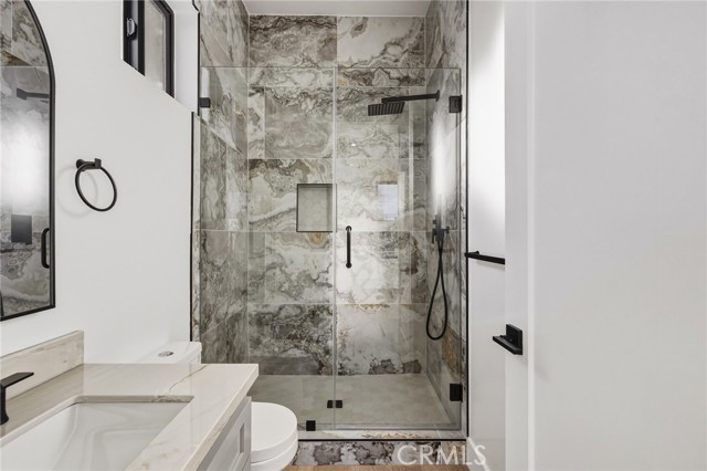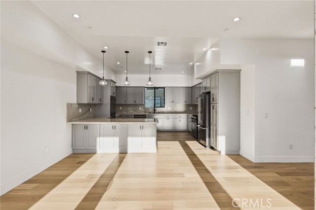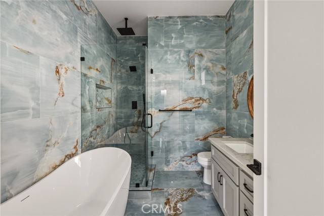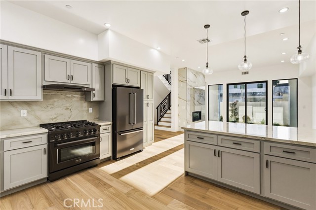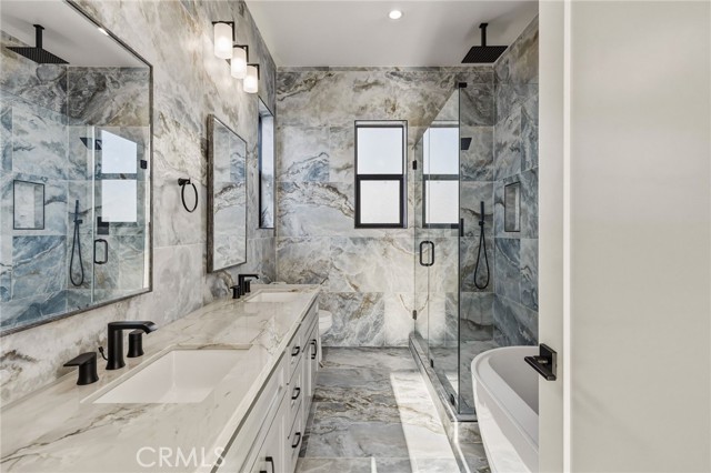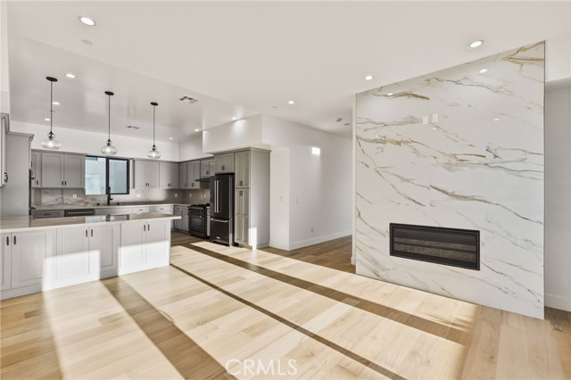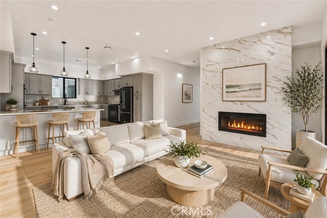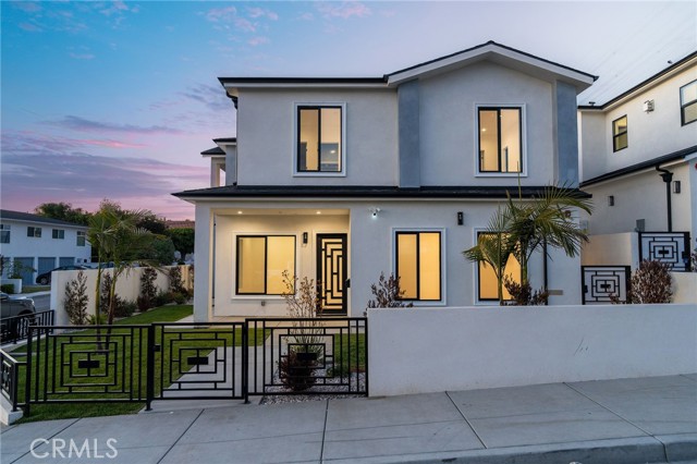 Brand new construction in North Redondo Beach, this stunning 5-bedroom, 4-bath home offers a thoughtfully designed floor plan, elevated finishes, and seamless indoor-outdoor living. The main level features a bright and open layout with a spacious living room and a versatile room with a fireplace—ideal as a formal dining space or an additional family room—just off the kitchen. The chef’s kitchen features quartz countertops, sleek appliances, and ample cabinetry. A sliding door off the versatile room opens to a private side patio, creating an easy indoor-outdoor connection, while an additional grass yard provides extra outdoor space. Two bedrooms and a full bath with a shower/tub combo are conveniently located on the main level, along with the laundry area. Upstairs, you’ll find three bedrooms, including dual primary suites—each featuring walk-in closets and bathrooms with walk-in showers, soaking tubs, and dual vanities. A third upstairs bedroom also offers its own en-suite bathroom, providing comfort and privacy for family or guests. Additional highlights include beautiful quartz finishes throughout and central A/C. Ideally located in North Redondo Beach, this brand-new home combines modern style, flexible living spaces, and everyday functionality.