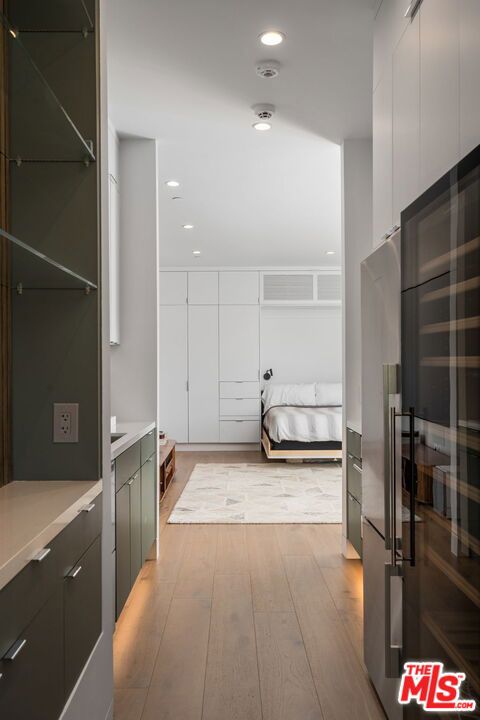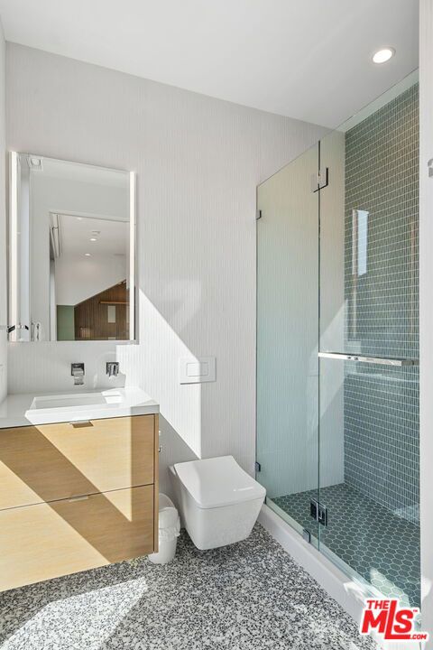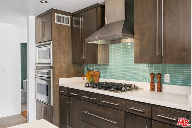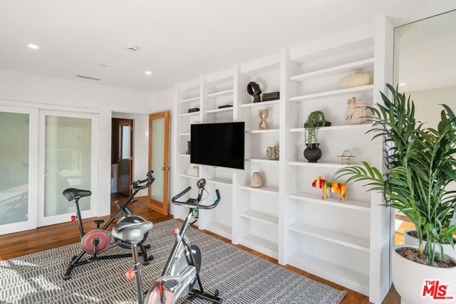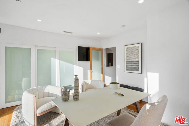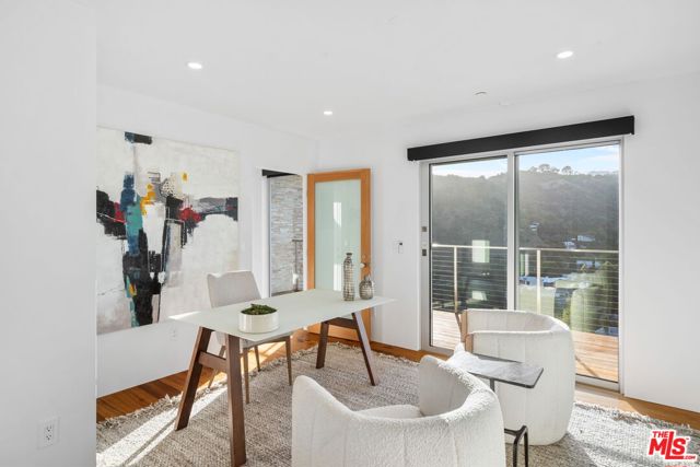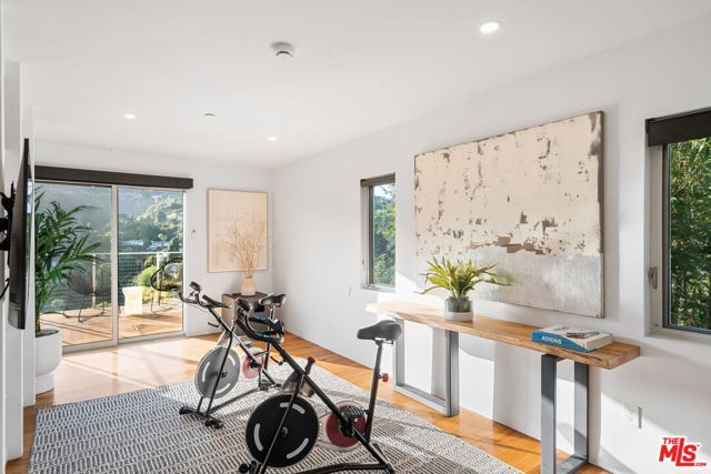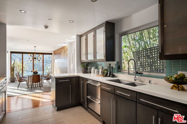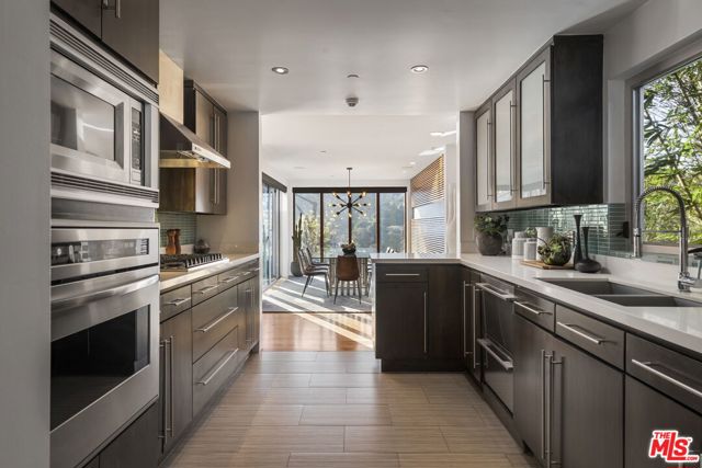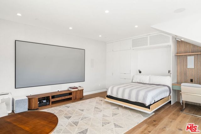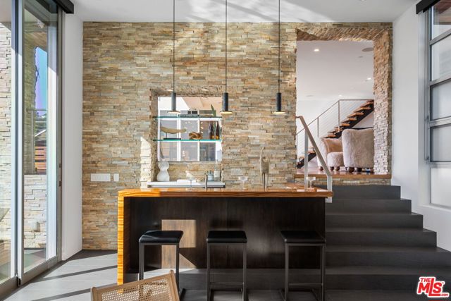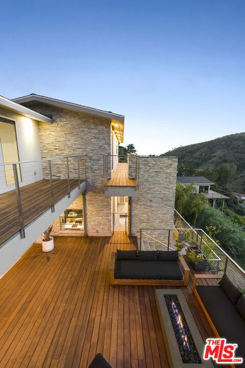 Positioned high above the canyon in the Hollywood Hills, this striking contemporary residence delivers the scale, presence, and seamless indoor-outdoor lifestyle expected at the upper tier of the market. Architecturally intentional in its design and further elevated by the current owners through targeted enhancements, the home offers a level of livability and entertaining capacity that meaningfully distinguishes it from its peers. Walls of Fleetwood stacking and pocketing glass sliders define the experience, dissolving boundaries between interior living spaces and expansive terraces that capture sweeping canyon views from nearly every room. A six-panel Fleetwood system at the main level disappears entirely, transforming the home into a true extension of its surroundings and creating a resort-like environment equally suited for intimate evenings or large-scale gatherings. The dining room, anchored by a custom inlaid wood panel wall, sits at the edge of home featuring floor-to-ceiling windows that create the sensation of floating above the canyon while you dine. Across the home in the media room, complete with a built-in bar and dramatic high ceilings, this same custom woodwork, paired with integrated slate finishes that extend from inside to out, introduces warmth and permanence grounding the modern architecture in a refined, timeless material palette. The media room, complete with a built-in bar and dramatic openings, serves as a central entertaining hub with direct access to the sunken plunge pool and spa, as well as the surrounding decks. A newly added steam room introduces a spa-caliber experience, positioned with direct access to the main deck and oversized hot tub designed to function as both a rapid-heat spa and a cold plunge. The transition between these elements creates a cohesive indoor-outdoor wellness environment. From the spa level, an exterior staircase leads directly to the primary suite, where a Japanese-inspired soaking tub and expansive walk-in rain shower complete the experience. Outdoor living has been executed with precision and intention. Multiple terraces, a high-output fire pit, and ceiling mounted heating elements allow for year-round usability of the outdoor spaces. A professionally installed motorized retractable screen system encloses the large Fleetwood openings at the touch of a button, preserving the open-air experience while enhancing comfort, climate control, and functionality for the days you prefer to stay inside while still taking in the fresh breeze. Smart home integration implemented by the current owners includes Lutron lighting, distributed audio, MyQ garage control, AquaLink spa management, ADT security hardware, numerous closed circuit security cameras, DoorBird, Shade Store motorized shades, and four-zone climate control (two gas and two electric systems). Additional upgrades include tankless water heaters, a new roof (2025), Toto heated bidet toilets on both levels, custom garage cabinetry, and multiple 220V charging outlets. Completed in 2023, the ADU expands the property's functionality with a separate entrance, full kitchen, laundry, and a 120-inch 4K projection system. A three-panel Fleetwood sliding panel system with a motorized retractable screen connects the space to the outdoors seamlessly, creating a flexible, design-forward environment ideal for guests, extended stays, or income potential. Both the main kitchen and the ADU feature Wolf and other luxury appliances and Fisher & Paykel dual-drawer dishwashers, reflecting a consistent level of finish throughout. The ADU further includes its own washer and dryer along with a full-size EuroCave wine refrigerator. With its combination of architectural scale, premium materials, and thoughtfully executed enhancements, this residence offers a level of presence, functionality, and experiential living that firmly supports its position within the upper echelon of the Hollywood Hills market.
