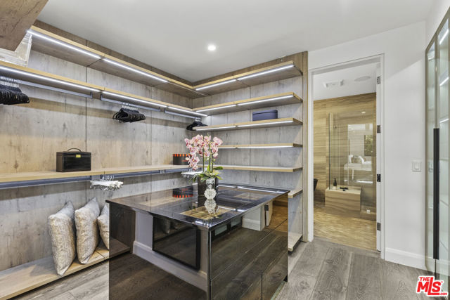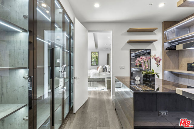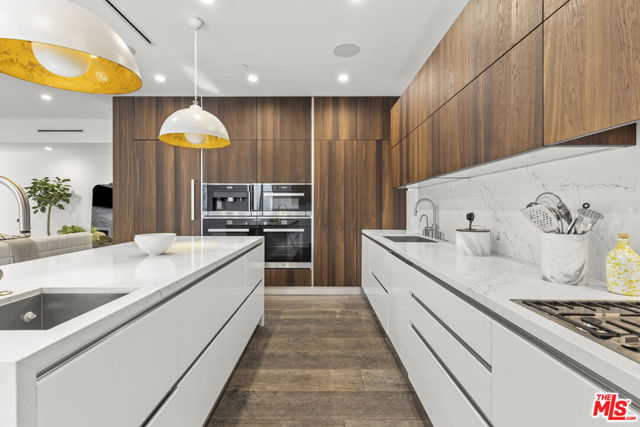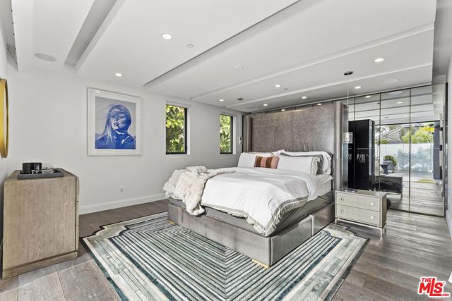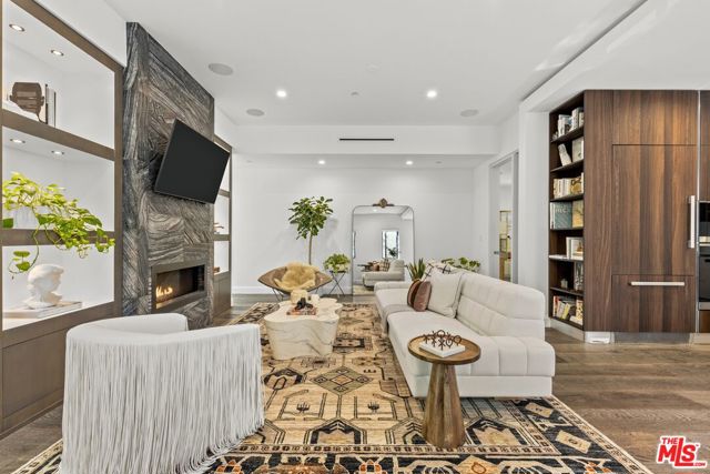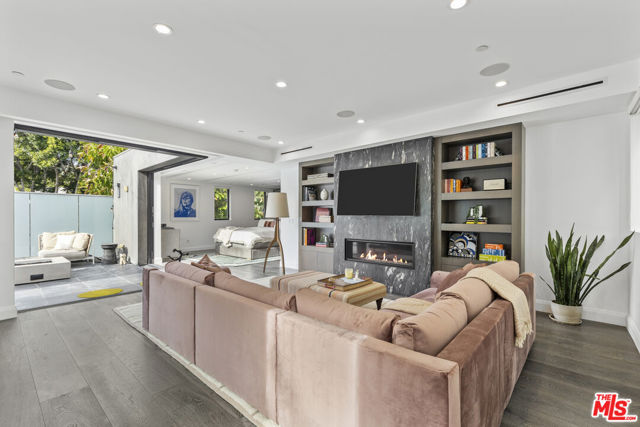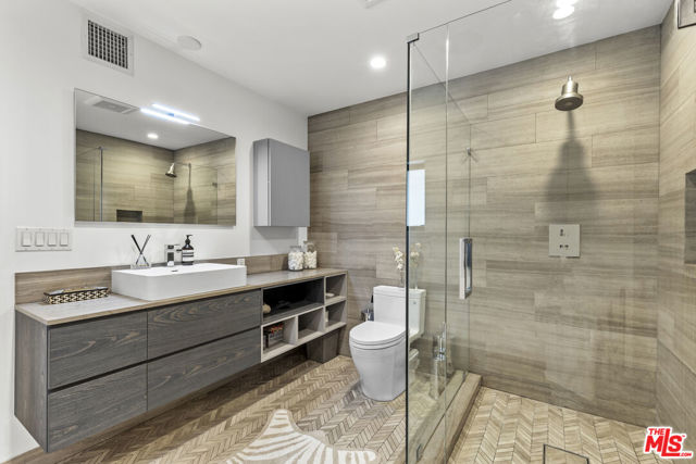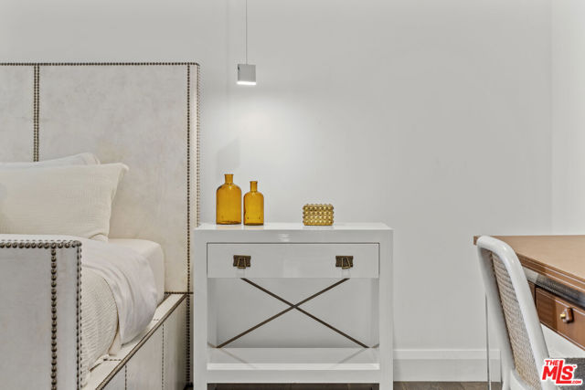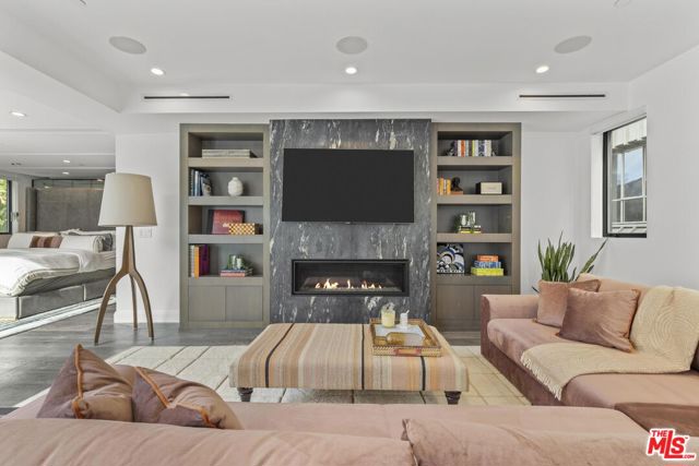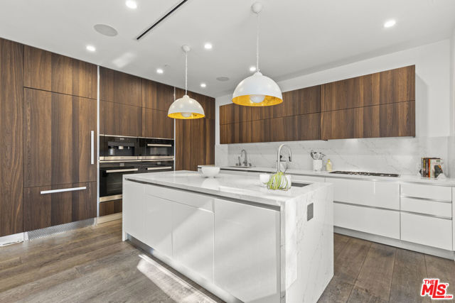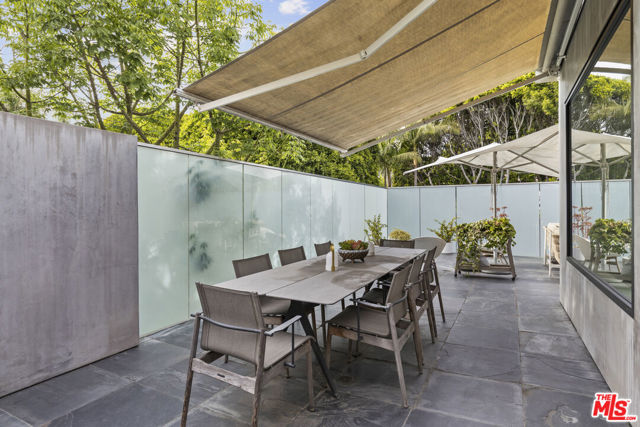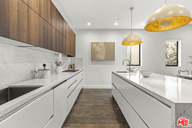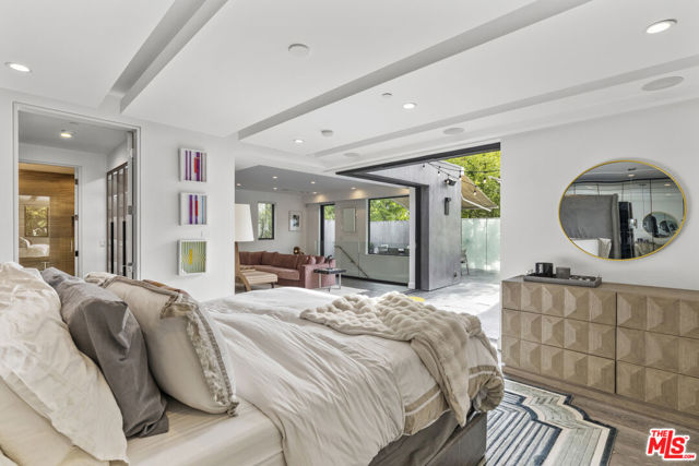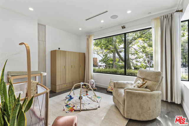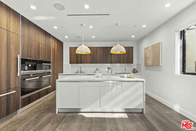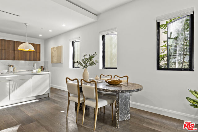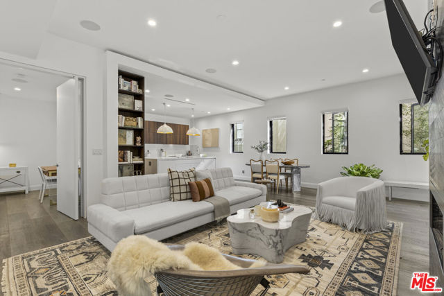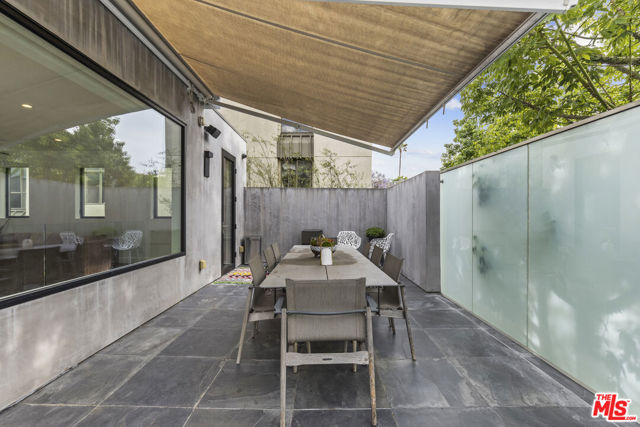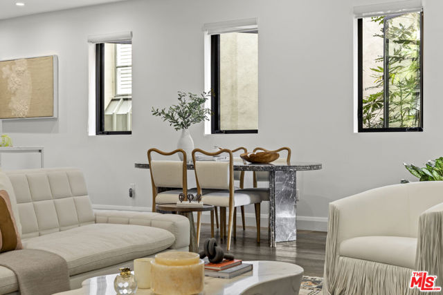 Welcome to a refined architectural residence in the coveted Norma Triangle, where warm modern design meets elevated living. Designed by Tomas Osinski, this three bedroom, three bath home spans over 2,500 square feet and lives like a single family residence within an exclusive two unit building. Interiors are defined by soaring ceilings, Fleetwood windows and doors, and beautifully layered materials, including travertine clad living spaces and custom built in shelving. The chef's kitchen is both sleek and functional, featuring Miele appliances, Caesarstone countertops, and custom Italian cabinetry, seamlessly connecting to the main living and dining areas. The primary suite is a true retreat, thoughtfully designed as an open concept upper level with a spa like bath, dual custom closets, and an integrated lounge space creating a flexible, loft like environment that opens to a private terrace. A private rooftop terrace captures striking views of the iconic Pacific Design Center an ideal setting for entertaining or unwinding. Two additional bedrooms provide versatility for guests, office, or creative use. Additional amenities include a secure subterranean garage with two parking spaces, EV charging capability, and a full home surveillance system. Set within one of West Hollywood's most walk able and sought after enclaves, the home is moments from some of the city's most recognizable destinations. Enjoy mornings at the Park, dog park, public librabry with pool, cafes, design forward shopping at Pacific Design Center and RH West Hollywood, and everyday convenience with the iconic Erewhon Market just down the street. The neighborhood blends architectural pedigree with a true lifestyle component of cafes, curated retail, and premier grocery all within close proximity. A rare, design driven offering that balances comfort and livability in one of West Hollywood's most desirable neighborhoods.