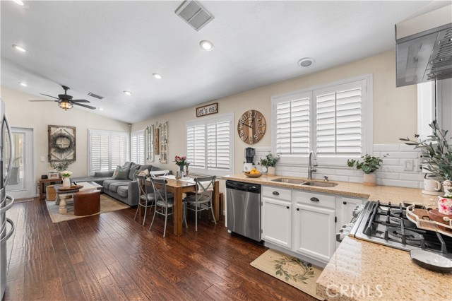 Stunning East Lancaster home with eye-catching curb appeal--this one won't last! Step into a bright formal living and dining area, perfect for entertaining. The family room flows seamlessly into the kitchen, creating an open and functional layout for everyday living. A private hallway leads to four spacious bedrooms and two beautifully upgraded bathrooms. Upgrades include engineered wood flooring, plantation shutters throughout, and remodeled bathrooms. The backyard is built for enjoyment with a large covered patio, block walls on three sides for privacy, and extensive concrete work for low maintenance. Mature palm trees complete the space, giving it a true resort-style feel. Move-in ready home priced to sell--schedule your showing today! Don't miss this opportunity to own this gorgeous home.