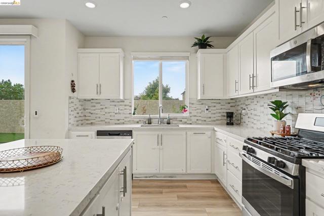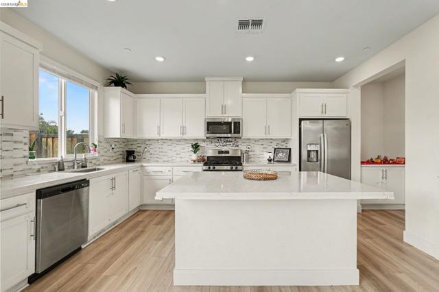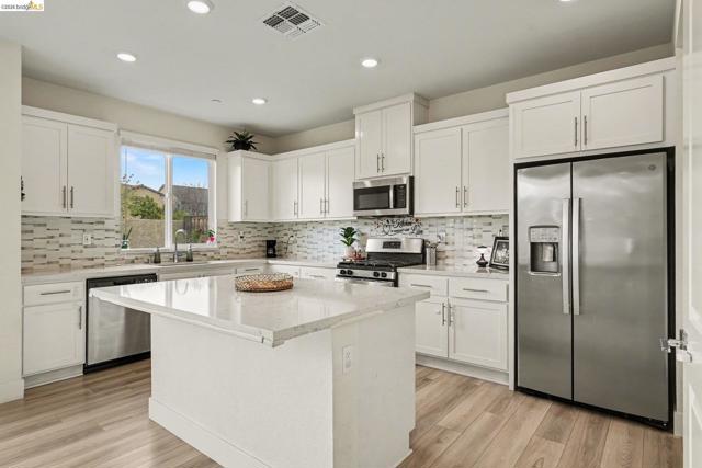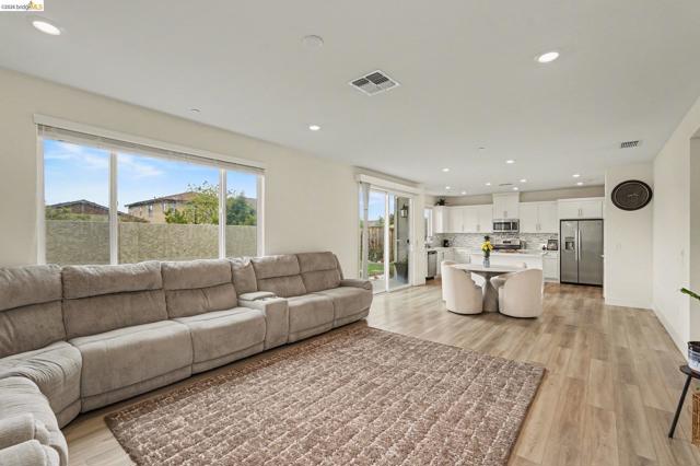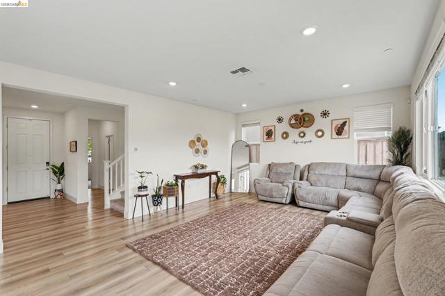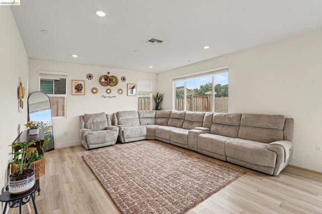 Welcome to a home that just feels right from the moment you walk in. Nestled in the heart of Emerson Ranch in Oakley, this light-filled residence greets you with an airy, open layout and a sense of comfort that’s hard to replicate. Morning light pours through the windows, filling the main living space and creating a warm, inviting setting for everything from quiet coffee moments to lively evenings with friends. The open-concept design keeps everyone connected, with the kitchen, dining, and living areas flowing together effortlessly. The kitchen is equipped with a gas cooktop, offering both performance and appeal for everyday cooking and entertaining, while updated light fixtures add a clean, modern touch throughout. Downstairs, a full bedroom and bathroom provide flexible living options—ideal for guests, extended family, or a private home office. Upstairs, a conveniently located laundry room adds everyday ease and functionality. The primary suite offers a peaceful retreat, complete with a soaking tub designed for relaxation at the end of the day. Thoughtful efficiency upgrades include leased solar and a tankless water heater, bringing modern convenience and energy-conscious living together. Step outside and you’ll find a backyard designed to be enjoyed, not maintained. With artificial turf underfoot, it’s always green and ready—perfect for relaxing evenings or weekend gatherings. Life in Emerson Ranch is about more than just the home—it’s about the lifestyle. Residents enjoy evening walks around the scenic lake, time at the park, and access to nearby bike trails just steps from the community green spaces. The area also features playgrounds, sports fields, and open space that bring neighbors together and support an active, outdoor lifestyle.