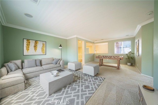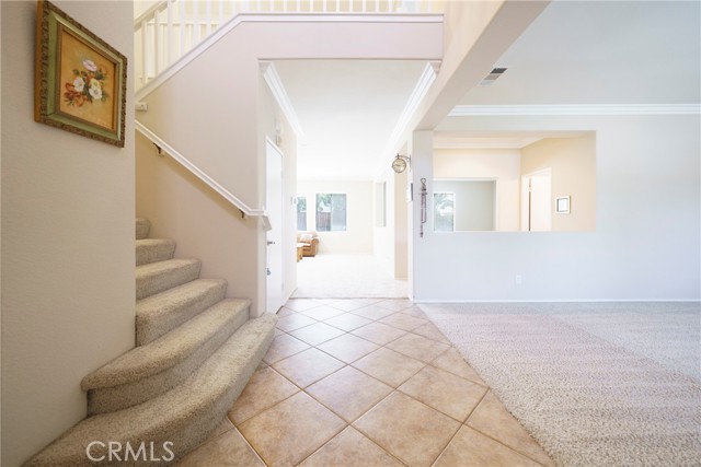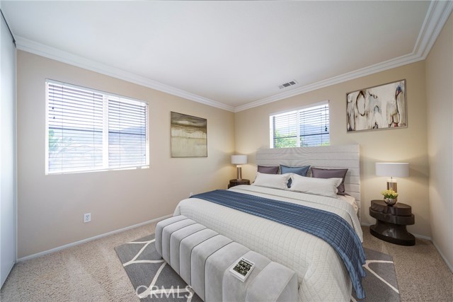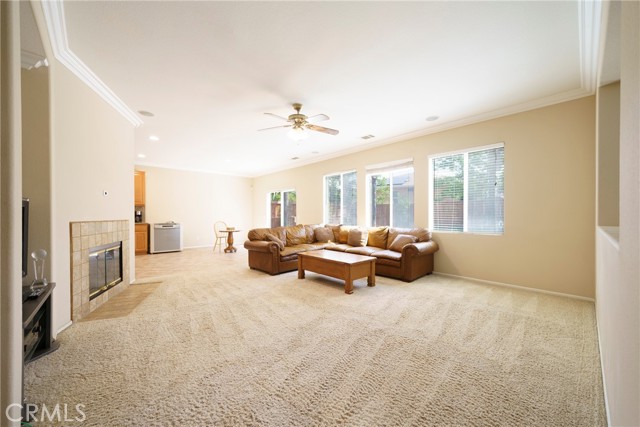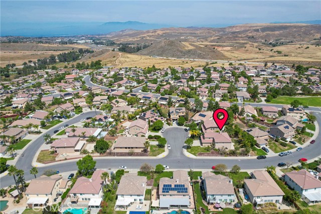 Welcome to one of the largest homes in the aptly named Painted Hills community. Ideally situated on a spacious corner lot at the start of a quiet cul-de-sac, this home offers a comfortable layout with 3512 sq ft designed for optimal living. The main level features a formal living room, dining room, and family room, along with a powder room and a versatile den that can easily serve as a fifth bedroom or home office. The kitchen is well-maintained and thoughtfully laid out, complete with granite countertops, a center island, pantry, and ample cabinetry. You’ll also find a dedicated laundry room with washer and dryer included, plus a spacious three-car garage with built-in storage. The low HOA provides access to a neighborhood park, playground, and picnic area. Upstairs, the oversized primary suite offers a relaxing retreat with a large en-suite bathroom, separate tub, and additional space perfect for a sitting area or workspace. Three additional bedrooms, a full bathroom, a bright secondary living area, and high ceilings complete the upper level. The backyard is a private, grassy space lined with palm trees, offering plenty of room to add a pool, pergola, or outdoor entertaining area. Enjoy mountain views and a convenient location just minutes from Glen Ivy Hot Springs, the I-15 freeway, and popular destinations like The Shops at Dos Lagos and Tom’s Farms. With its generous space, flexible layout, and great location, this home is ready for you to make it your own.