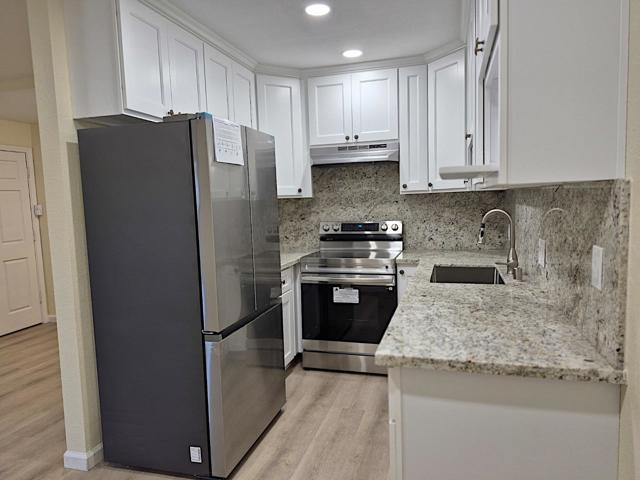 Beautifully newly remodeled townhome Located in Blossom Hill San Jose, this 1,221 sq. ft. home offers three bedrooms and two full bathrooms. Rare opportunity to find this townhome located at the corner unit. Dining area with a new dual pane window and blind, Living area with patio door open to very spacious backyard. Brand new Central A/C. New Kitchen with all brand new stainless steel appliances: Refrigerator, Dishwasher, Range Hood, Electric Range Stove with Granite counter top and solid wood cabinets. Upstairs all 3 bedrooms with vaulted ceiling, spacious primary suite with ceiling fan, walk-in closet, new dual pane windows, remodeled new shower stall, double sinks, vanity counter top and cabinets and flooring. Hallway bath with new tub, shower glass door, vanity sink, cabinets, new dual pane window, etc. New interior paint throughout. New SPC Flooring throughout upstairs and downstairs of the whole house. New paint on wall and new epoxy flooring inside the 2-car side by side garage. One new skylight with 50% the new roof done by the HOA. Inside laundry. Low HOA Due, Very convenient location: easy access to freeway 85. MUST SEE!!