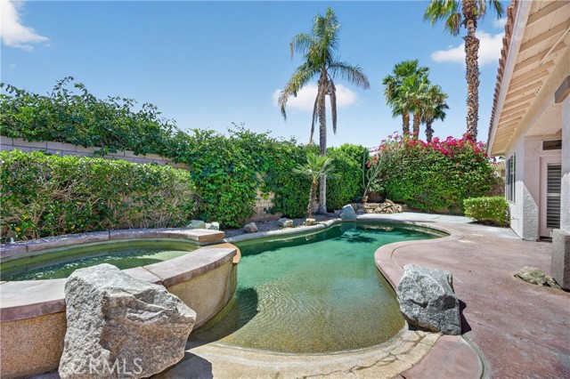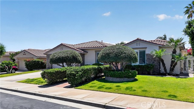 Welcome to 77559 Marlowe Ct, a beautifully upgraded residence in the prestigious gated community of Whitehawk in Palm Desert. This expansive 5-bedroom, 3.5-bathroom is the largest model in the community combining space, style, and true move-in ready convenience. Step inside to a bright, open-concept layout enhanced with brand new luxury vinyl plank flooring, fresh white interior paint, new shutters, and updated lighting and ceiling fans throughout. The fully remodeled kitchen features stunning new quartz countertops, stainless steel appliances, a spacious island, and abundant cabinetry, all flowing seamlessly into the family room with a cozy fireplace and direct access to the front and backyard. The primary suite is a private retreat leading to the pool and spa, along with a beautifully updated spa-like bathroom featuring modern finishes, dual vanities, a soaking tub, and a separate shower. All bathrooms throughout the home have been tastefully upgraded, and each bedroom offers generous space and comfort. Step outside to your private backyard oasis complete with a sparkling pool and spa, covered patio with new outdoor fans, and lush landscaping with mature plants and an exceptional amount of space for entertaining. The detached casita has also been fully updated with modern finishes, new mini-split ac unit and its own bathroom, making it ideal for guests, a home office, or multi-generational living. Located within a secure gated community with low HOA dues that include cable, Wi-Fi, and common area maintenance, residents also enjoy access to a community park and golf cart access to Woodhaven Country Club.This is a rare opportunity to own one of Whitehawk’s most upgraded and desirable homes—truly move-in ready and designed for the Palm Desert lifestyle.