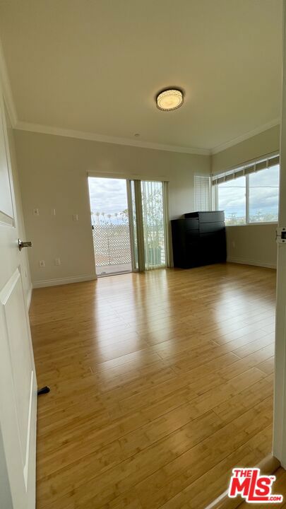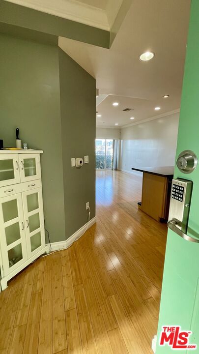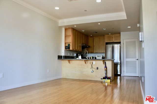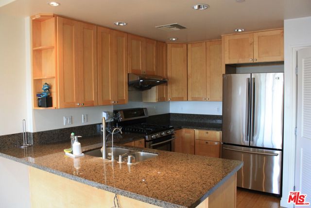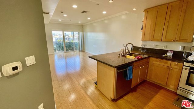 Modern architectural style & well maintained condominium located in Mid-Wilshire Koreatown. Experience contemporary living in this beautifully maintained, modern condominium, perfectly situated in the vibrant heart of Mid-Wilshire Koreatown.This desirable unit boasts a prime Northwest corner location and offers 2 spacious bedrooms and 2 full bathrooms, each filled with natural light and providing a peaceful retreat from city life.Enjoy enhanced privacy with bedrooms that are thoughtfully separated, each featuring its own private balcony. The open-concept floor plan is complemented by soaring 9-foot ceilings, leading you from the airy living room to sweeping north-facing mountain views and the iconic Hollywood sign. Premium features include an in-unit washer and dryer room, elegant granite countertops, recessed lighting, luxurious Canadian maple wood cabinetry, a remote entry front door, an advanced alarm system, and an intercom for added convenience and security. Bathrooms gleam with marble floors, while bamboo hardwood flooring extends throughout the living spaces and bedrooms. Custom built-in closet organizers, crown molding, two inviting patios, and a tranquil courtyard with a fountain and BBQ area provide exceptional comfort and style. Enjoy secure, 2-car tandem gated parking plus ample guest parking for 7 vehicles, all monitored by a comprehensive 45-camera security system. The complex boasts a low HOA fee and unparalleled conveniencejust moments from renowned restaurants, shopping centers, Galleria Market, major freeways, and only 10 minutes from the Crypto.com Arena and Downtown LA. Don't miss the opportunity to make this stunning condominium your new home in one of LA's most exciting neighborhoods!