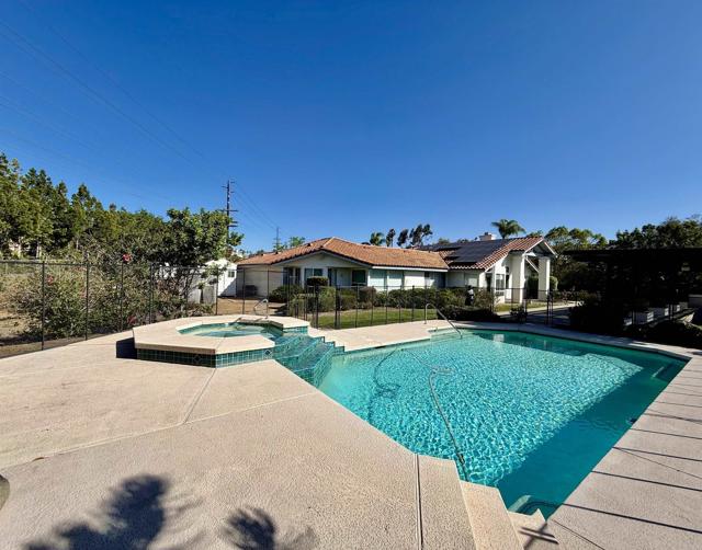 This exceptional ranch estate on prestigious Lake Poway Road presents a rare opportunity to own in one of Poway's most sought after locations. Set on 1.11 private acres with sweeping views, this beautifully maintained residence offers just under 3000 square feet with 4 spacious bedrooms and 4 bathrooms, including an expansive primary retreat with custom dual walk-in closets. Designed for effortless indoor-outdoor living, the inviting family room with fireplace flows into the kitchen and opens to spectacular resort-style grounds featuring a sparkling heated pool, spa,and multiple entertaining areas framed by stunning sunsets. Thoughtfully updated with owned Solar, newer roof, new insulation, dual HVAC systems, new luxury vinyl plank flooring, new dishwasher. 3 car garage and multiple parking space for family and friends.Trail next to the home is close to 3 miles of amazing hiking or horseback riding. Award winning Poway School district and moments away from Lake Poway recreation yet offering privacy and tranquility, this is a rare legacy property in an exceptional setting. Buyers to check all measurements and disclosures before COE.