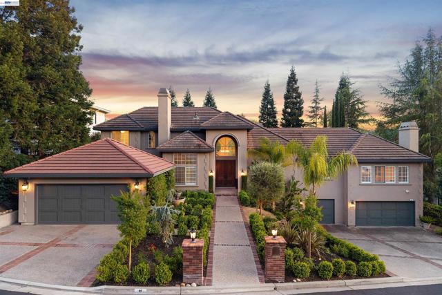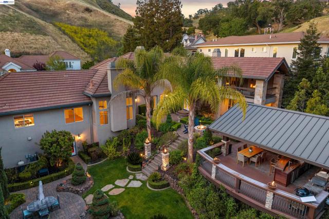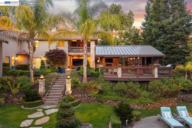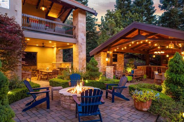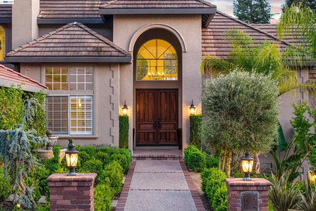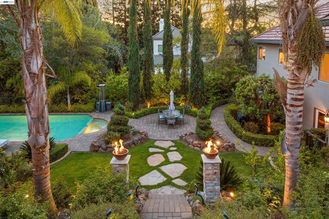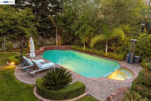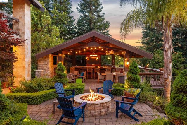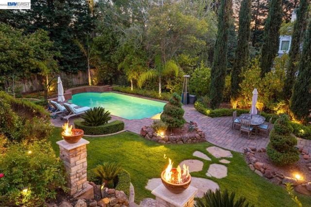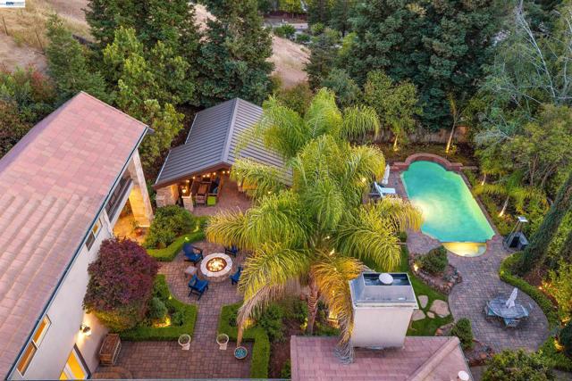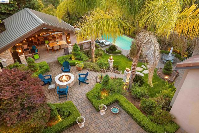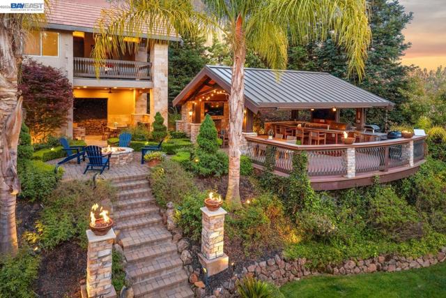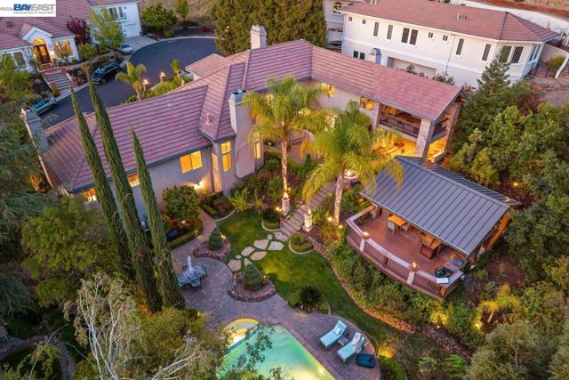 Tucked at the end of a peaceful cul-de-sac in prestigious Roundhill Country Club, this exceptional custom residence offers a rare blend of refined luxury, comfort, and effortless California living. Set on a private and serene .37-acre lot, the home spans approximately 3,577 square feet with four bedrooms and three and a half baths, thoughtfully designed for both everyday living and elegant entertaining. A dramatic entry with soaring volume ceilings sets the tone, flowing seamlessly into sophisticated formal spaces and a beautifully appointed kitchen that opens to the inviting family room. The layout is both functional and flexible, with three well-appointed bedrooms located on the main level. The primary suite is a true sanctuary, recently transformed into a spa-inspired retreat. Featuring quartz countertops, a freestanding soaking tub, an expansive walk-in shower, and a generous closet, the space evokes the ambiance of a luxury resort. Step outside to your private covered veranda, complete with a fireplace—an idyllic setting to unwind with a glass of wine while overlooking the tranquil backyard. Designed for year-round enjoyment, the outdoor living spaces are nothing short of spectacular. The resort-style grounds feature a covered pavilion with its own fireplace, a fully equipped outdoor kitchen, built-in heaters, and a television—creating the ultimate gathering space for entertaining. Fire features throughout the yard add warmth and ambiance, while the built-in firepit invites cozy evenings under the stars. A sparkling pool completes this backyard oasis, offering the perfect escape on warm summer days. With a rare five-car garage and an unparalleled combination of luxury amenities and inviting spaces, this remarkable property truly has it all.